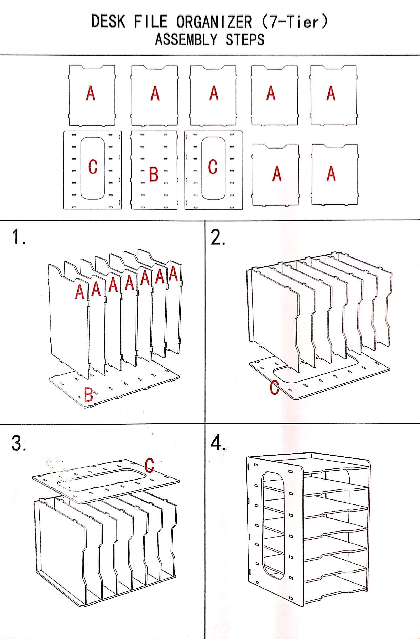 卓上収納 ラック A4ファイルラック 組み立て式 プラスチック デスク上置き棚 新聞/雑誌/フォルダー/書類入れ レターケース 机上用品 書類ケース整理 収納 オフィス 寝室 リビング収納 (7仕切り)