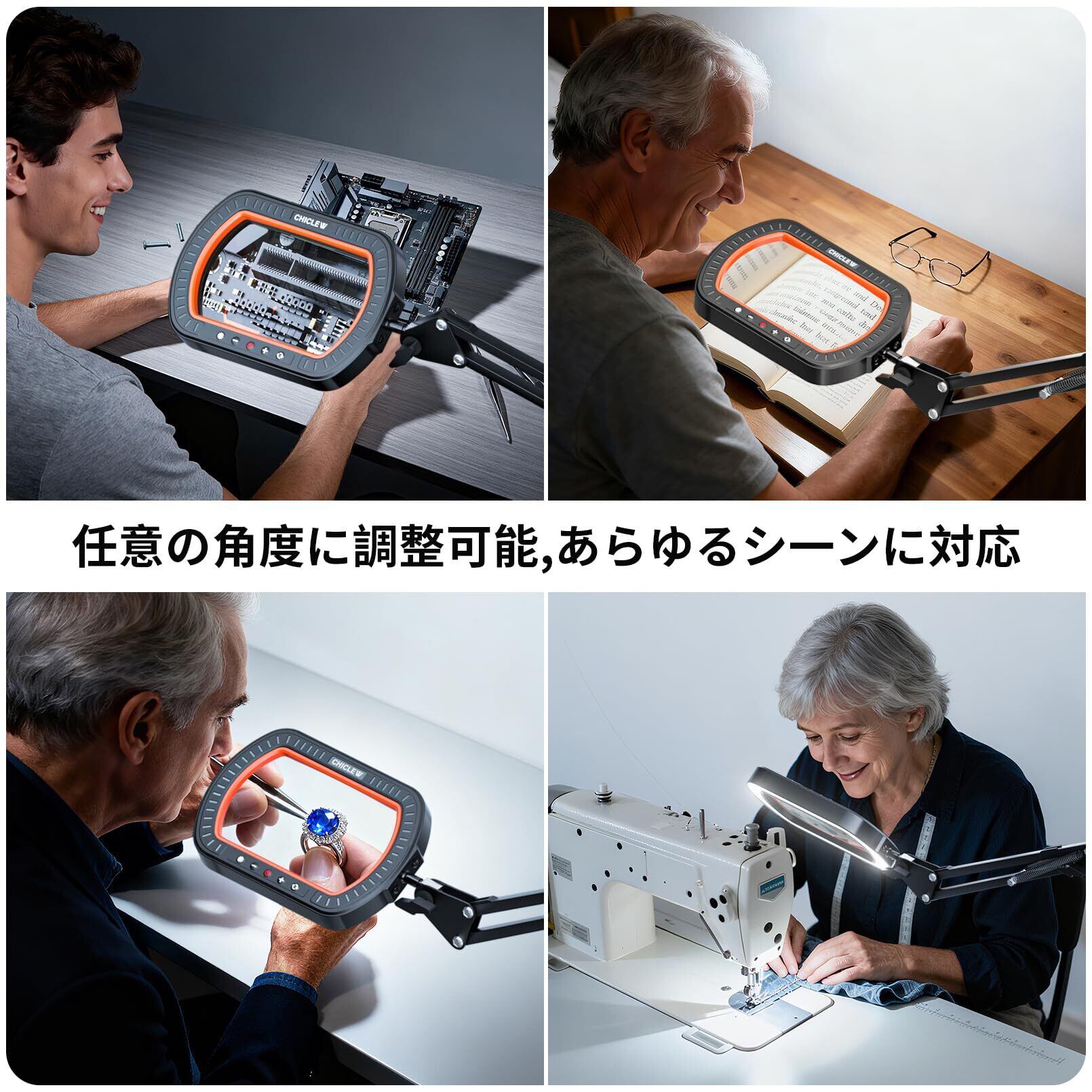 実用的な贈り物選び この拡大鏡は照明付きで、趣味の愛好家から職業従事者まで信頼できる性能を発揮します。読書、模型製作、ダイヤモンド絵画、刺繍、DIY装飾品作り、電子機器修理など、精密作業に最適です。 実用性と魅力的なデザインを兼ね備えた、機能性と気配りが感じられる贈り物です。実用性と魅力的なデザインを兼ね備え、考え抜かれた設計の製品は、友人や家族への贈り物にぴったりです。