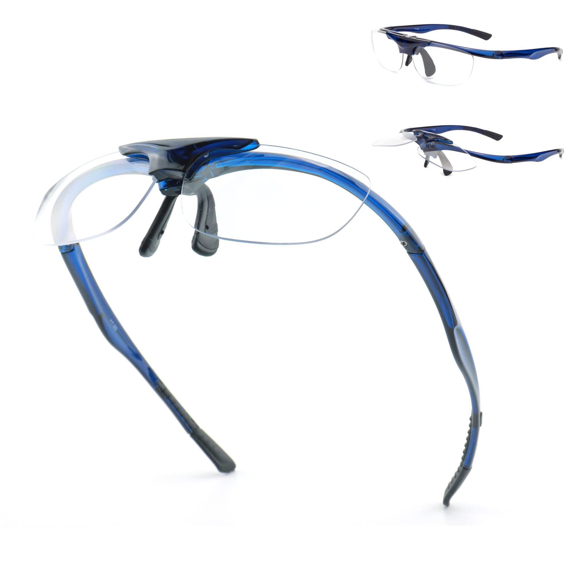 拡大鏡 跳ね上げ ルーペ 1.0-3.5倍 メガネ型ルーペ ブルーライトカット 拡大眼鏡 遠近両用 かくだい鏡メガネ めがね 眼鏡型拡大鏡 細かい作業 新聞 読書用 大きく見える 釣り(あおい 2.0)