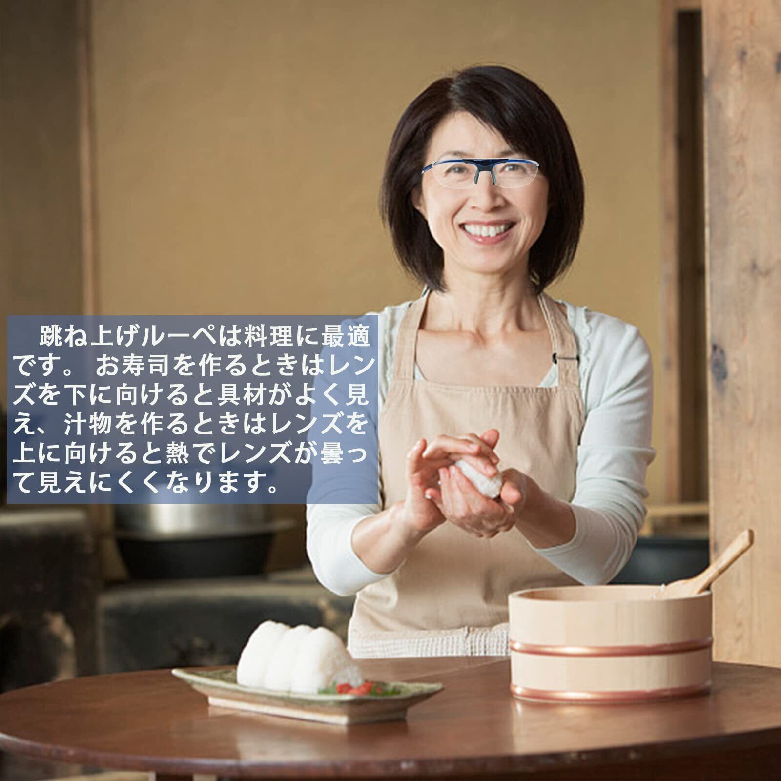 跳ね上げ式ルーペメガネ - 遠くを見るときはレンズを上げ、近くを見るときはレンズを下げる片手操作で、遠近両用のメガネなので頻繁に外す必要がありません、とても便利です。釣り、修理、読書に非常に適しているので、細かい作業を心配する必要はありません。