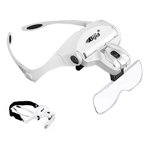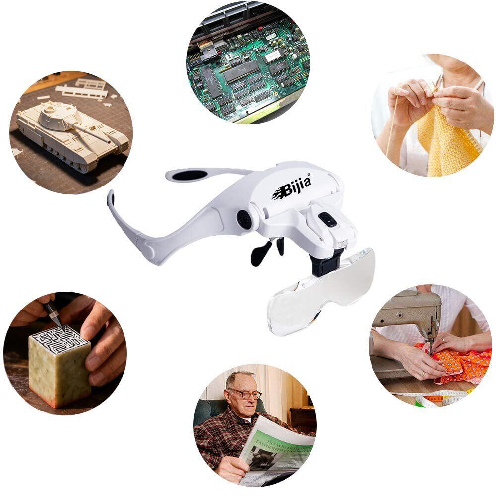 BIJIA ヘッドルーペ めがね型 ルーペ 拡大鏡 拡大眼鏡 読書 編み物 5レンズ交換調節 LED付拡大鏡 メガネゴムバンド両用(豪華版)