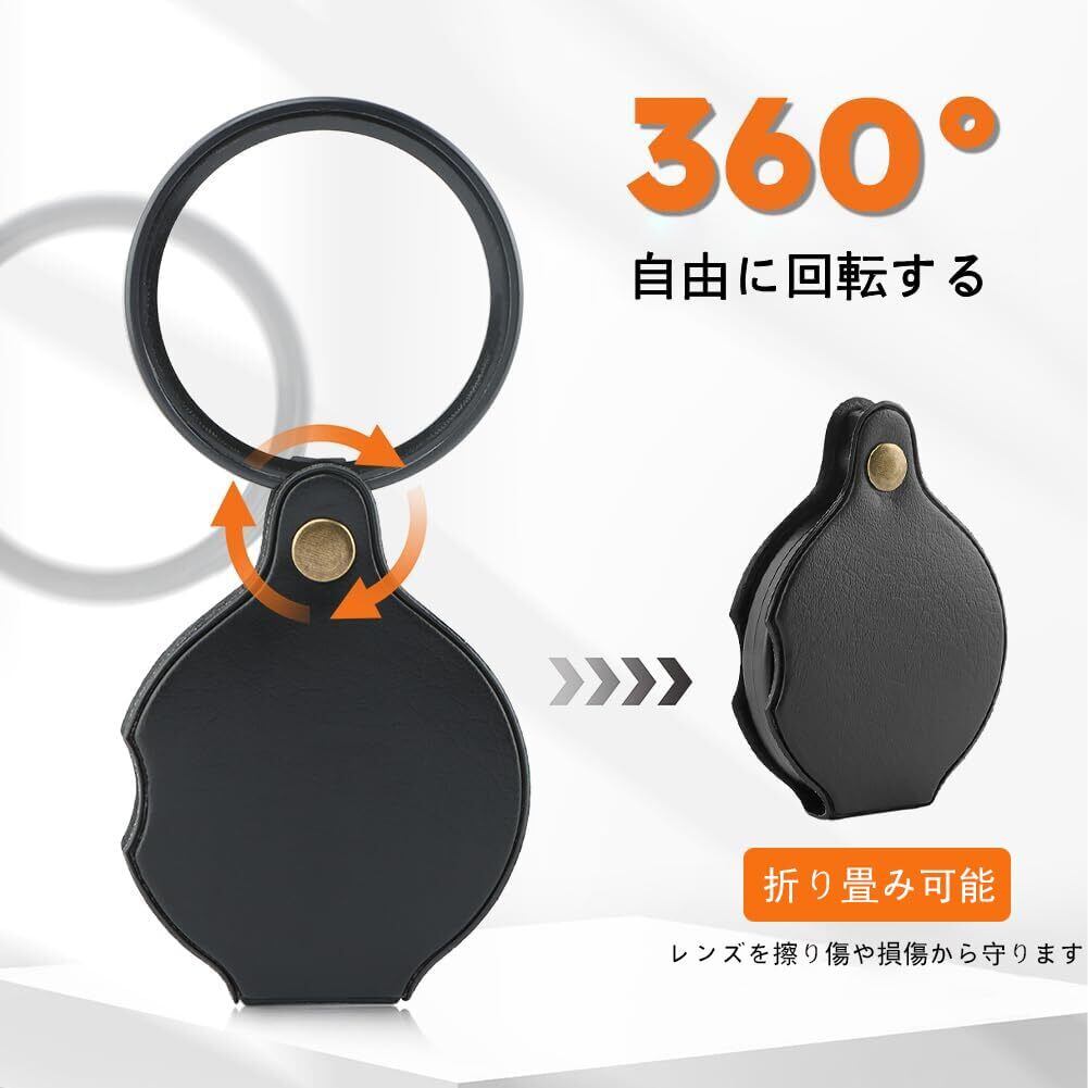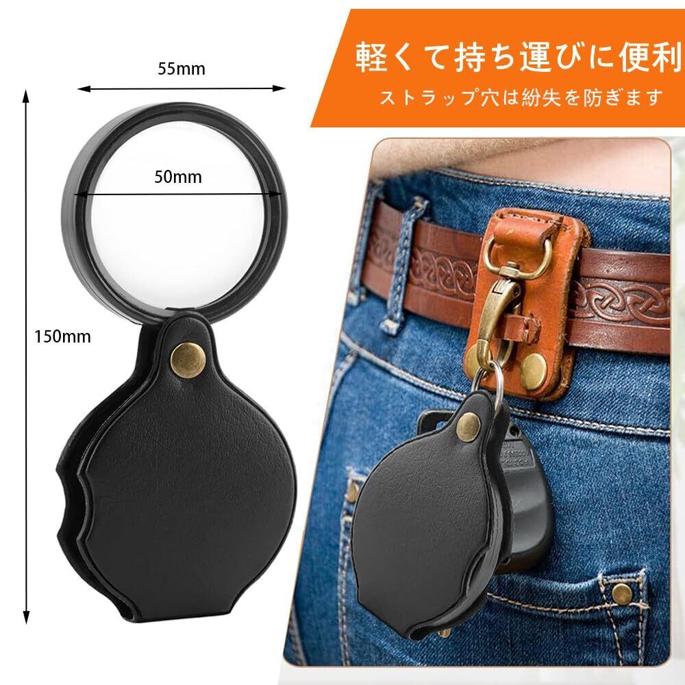 ポケットルーペ 折り畳み式 10倍 虫眼鏡【2個入り】レンズ径 50mm 虫眼鏡 回転収納 手持ちルーペ レザーケース 帯便利 子供の自然観察 高齢者 新聞 読書用 小型 拡大鏡