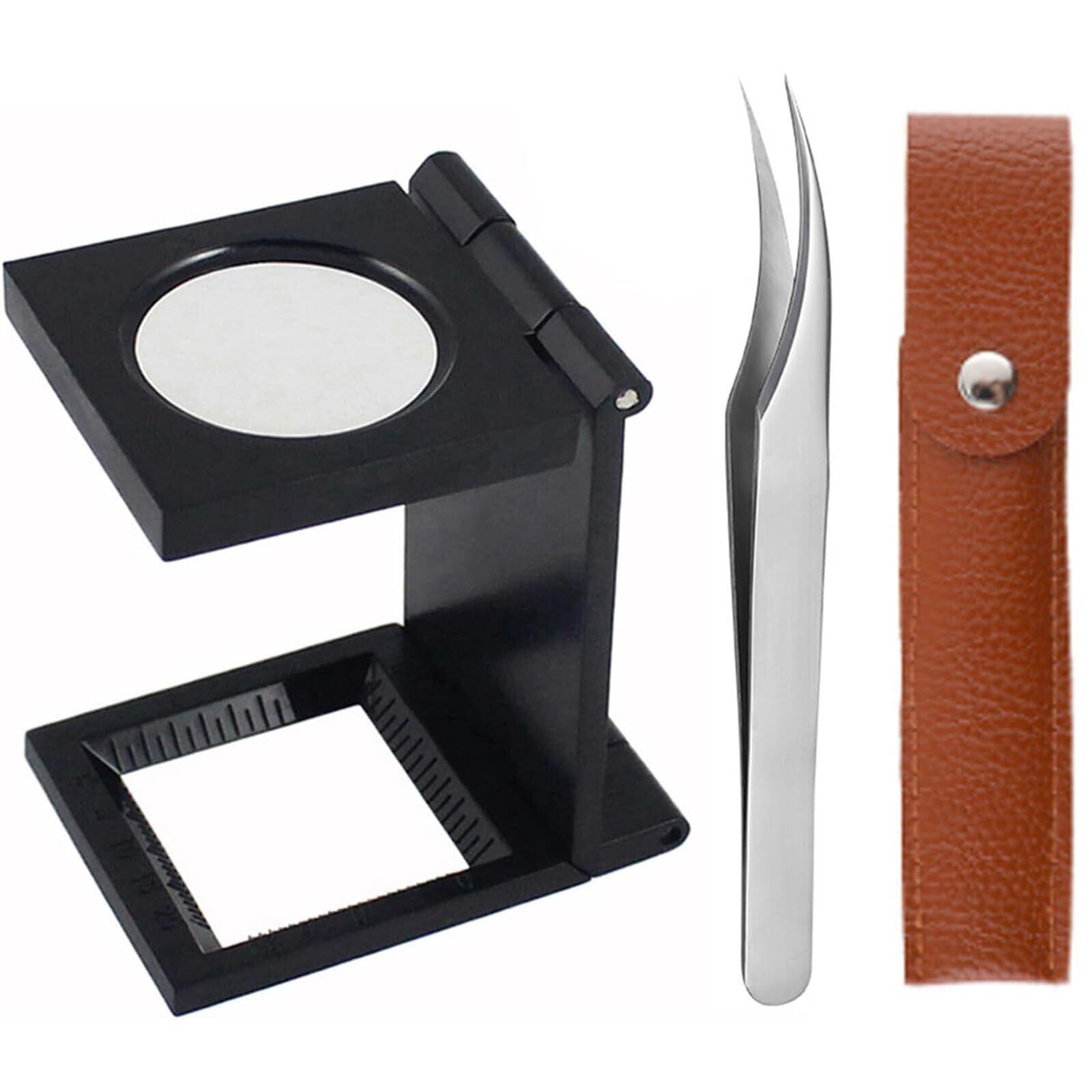 刺抜き とげ抜き 折りたたみ式スタンド縞見ルーペ スタンド 手持ち 拡大鏡 ピンセット リネンテスター ルーペ 精密作業用折り畳み式でトゲが良く見える 読書 觀察 精密作業 保護カバー付き ((10倍))