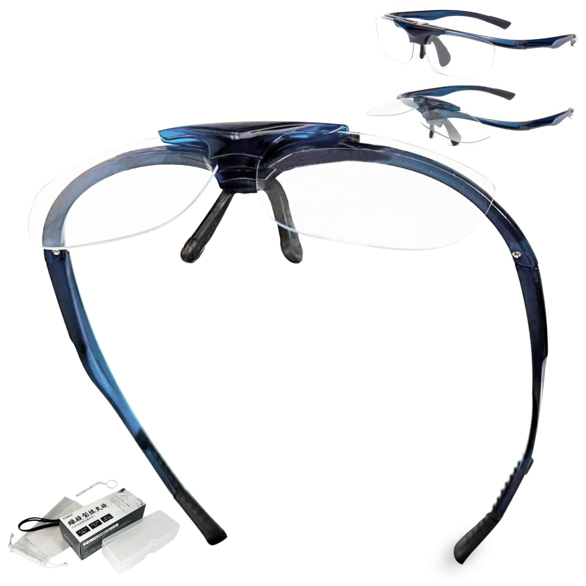 【数量限定】ルーペメガネ 跳ね上げ 最新型 眼鏡型ルーペ 跳ね上げ式ルーペ ブルーライトカット ルーペ メガネ 拡大鏡 めがね メガネ型ルーペ ハネアゲ 大きく見える メンズ 眼鏡 女性用 細かい作業 輻射防止 ルーペ型眼鏡 拡大 かくだい鏡メガネ プレゼント ギフト メンズ レディース ブルー 1.6倍