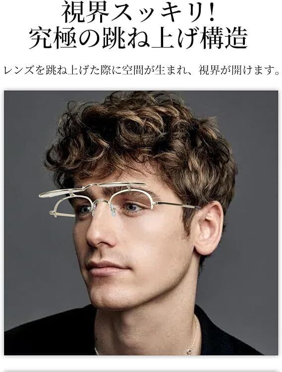 【跳ね上げ式拡大鏡 】--跳ね上げ式拡大鏡 のメリットは、状況に応じて眼鏡をかけたり外したりする手間がかからないことです。跳ね上げ式ならば、レンズを上げるだけで裸眼状態になるので便利です。