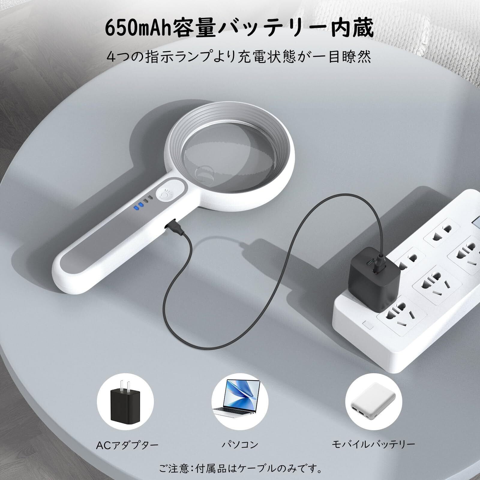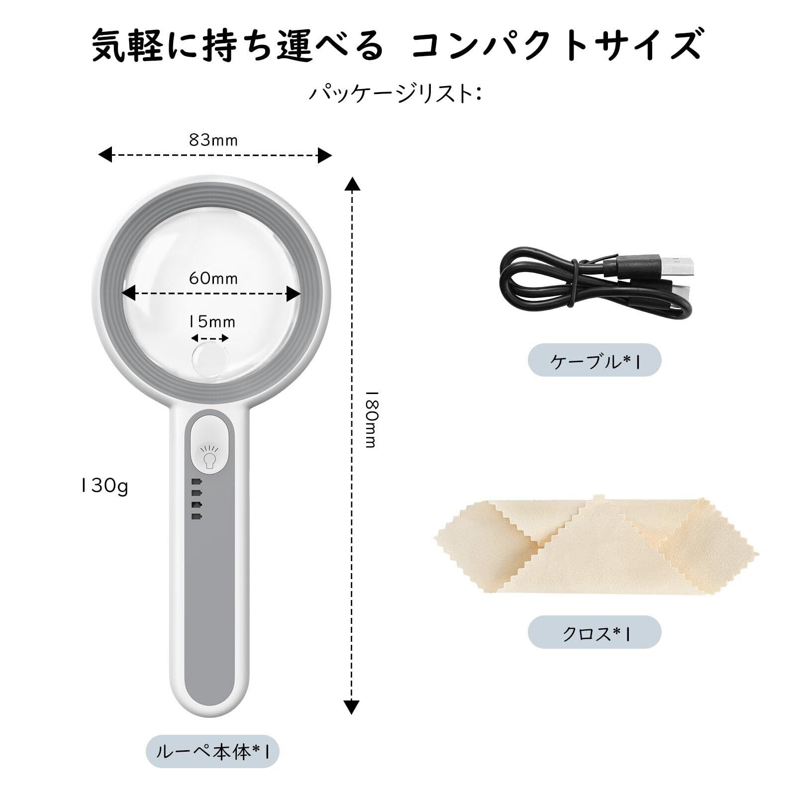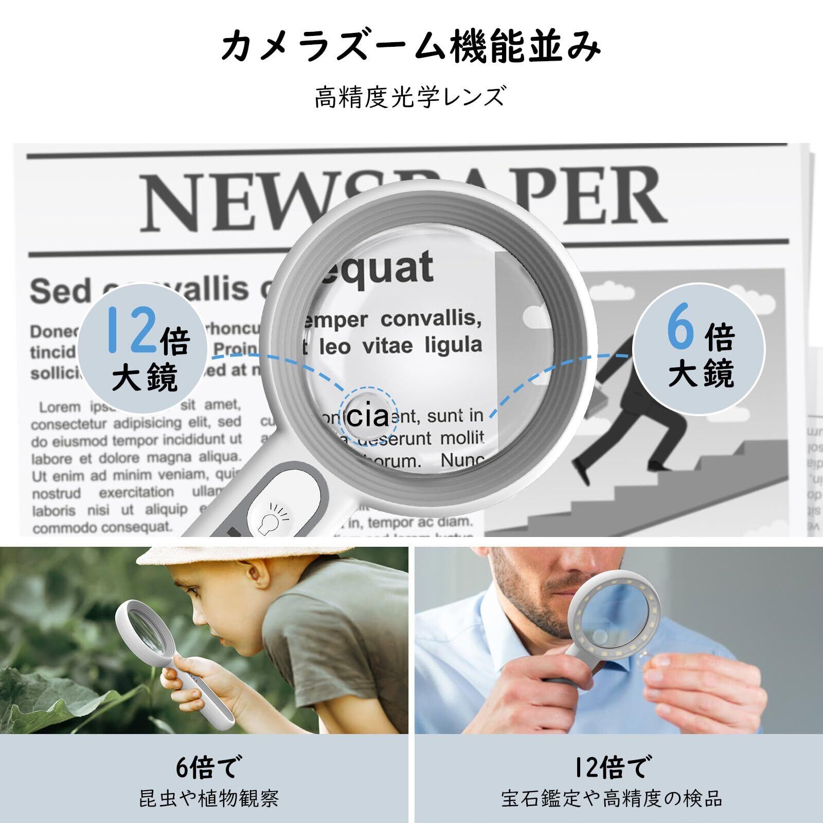 【在庫処分】MoKo ルーペ 手持ちルーペ LED付き USB充電式 虫眼鏡 拡大鏡 6+12倍高倍率 2in1 デュアルレンズ 読書用拡大鏡 ハンドヘルド 60mm内径 光学ガラスレンズ 耐衝撃 新聞 コンパクト 携帯便利 細かい作業 昆虫/植物観察