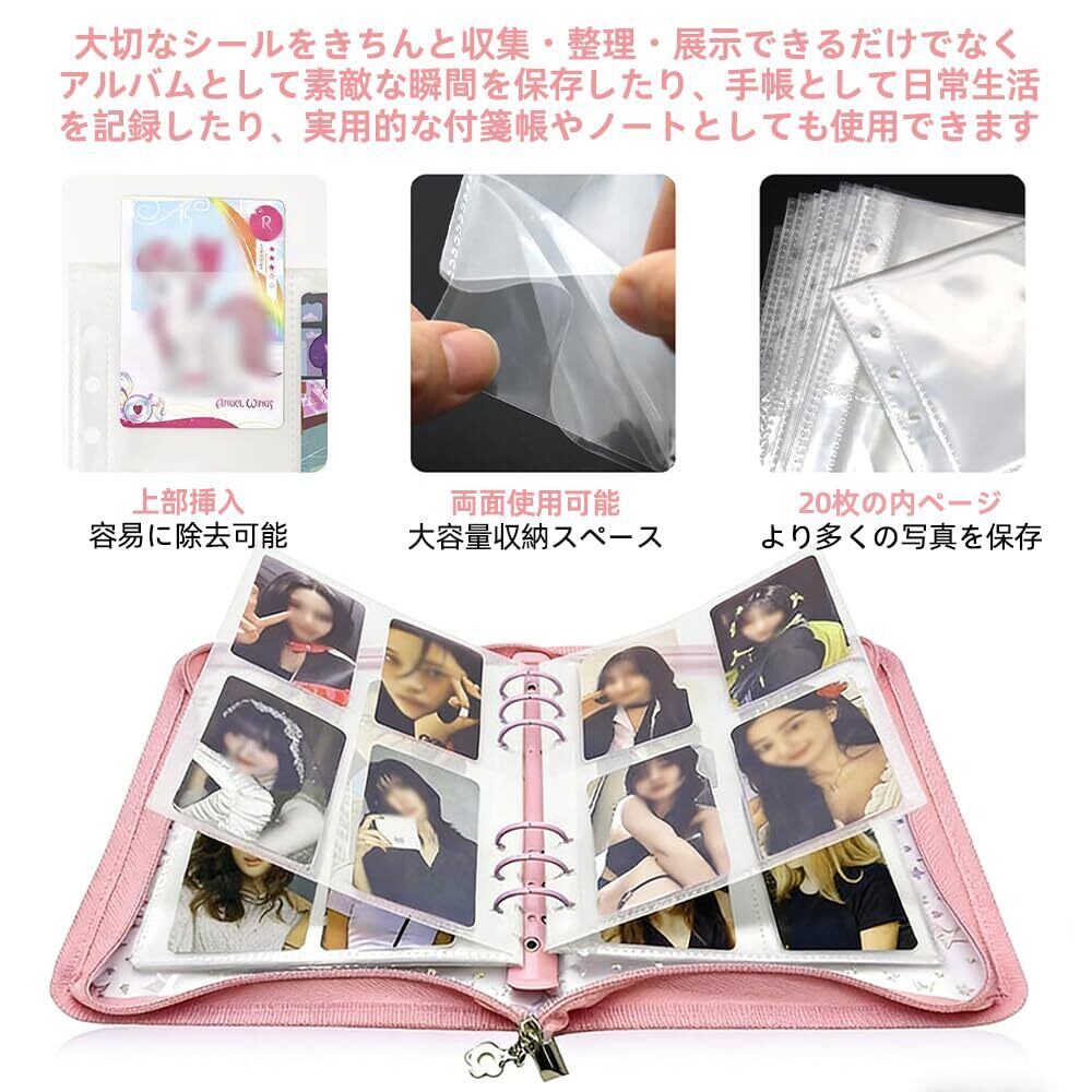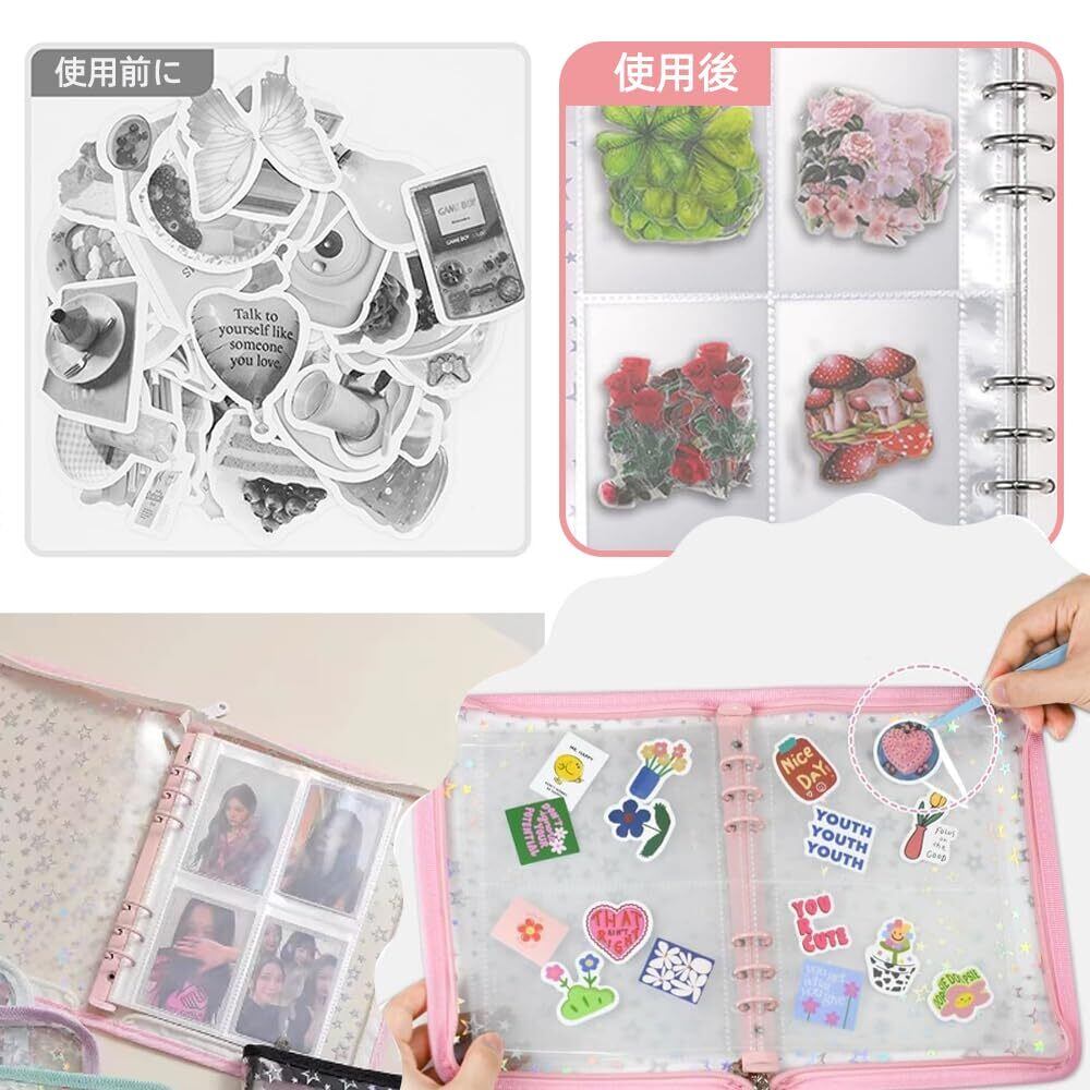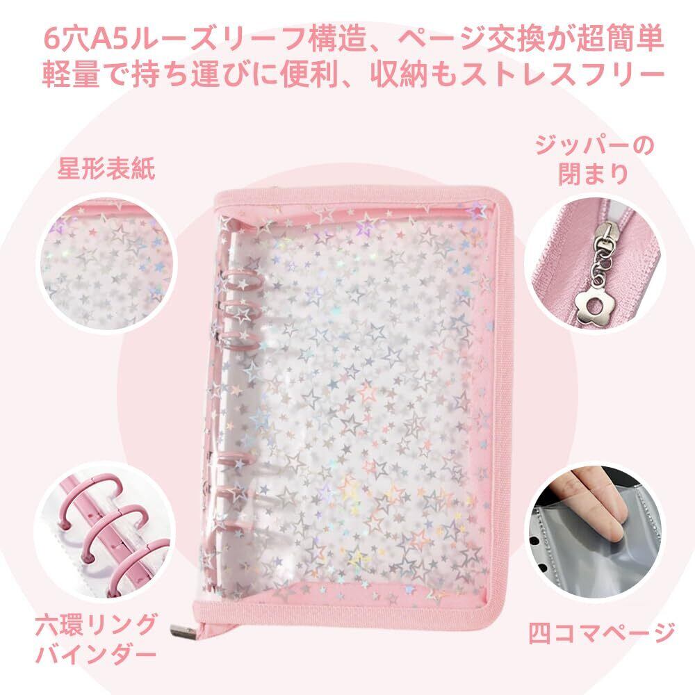 シール 手帳 透明 大きめ A5 星柄シールバインダー 収納バインダー クリアシール手帳 ステッカー収納アルバム 女の子 はがせる 6穴 20枚透明ポケット付き 収集整理展示に最適 (ピンク)