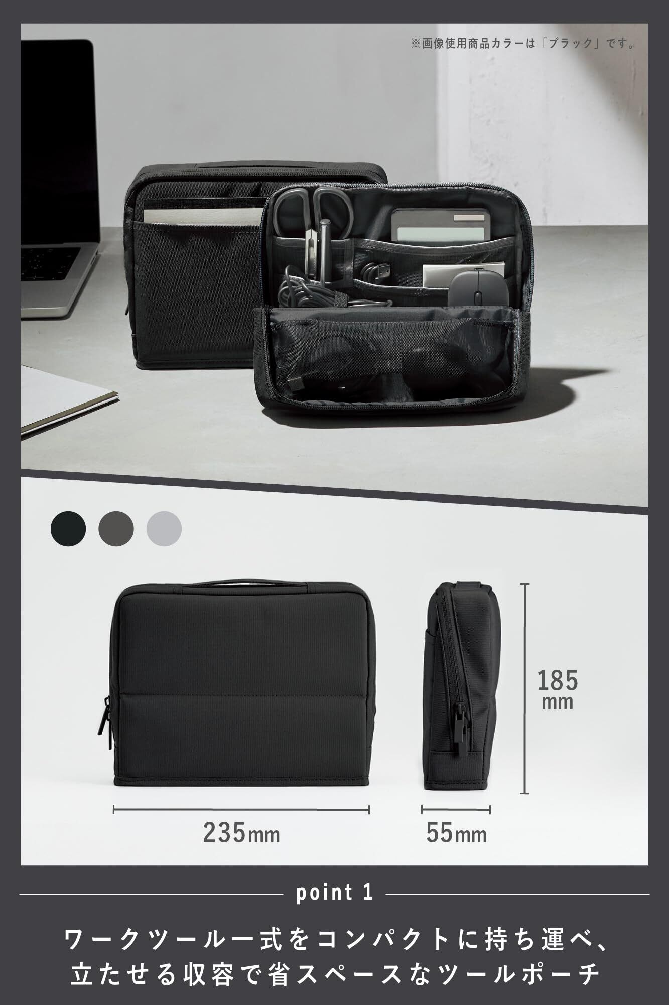 ワークツール一式をコンパクトに持ち運べ、立たせる収納で省スペースなツールポーチ