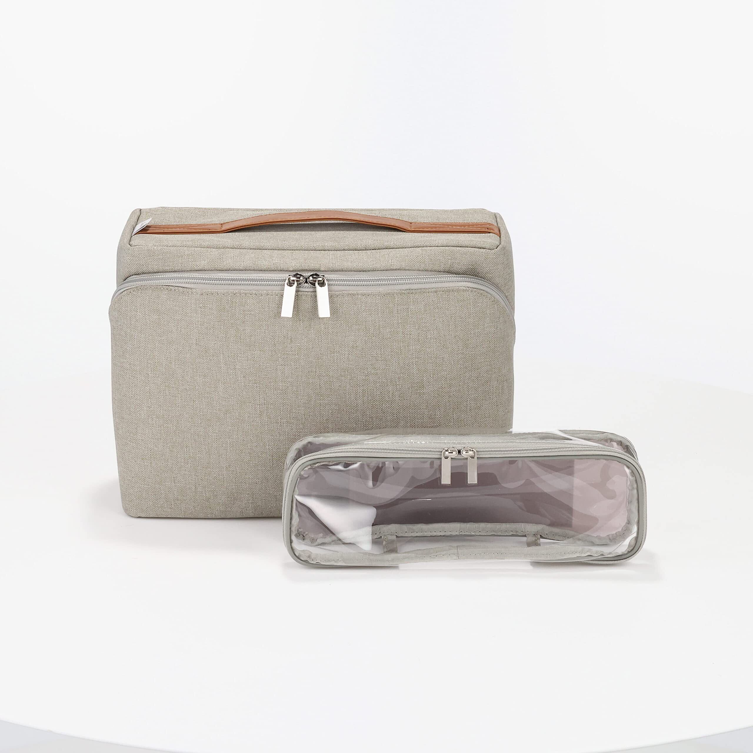 取り外し可能なクリアポーチには筆記用具や小物を収納できます。