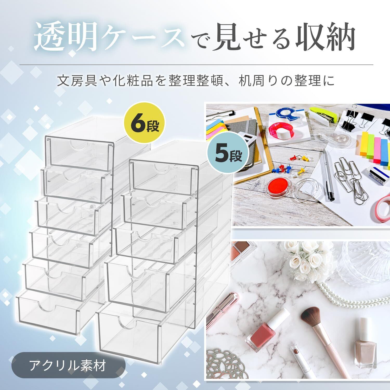 【新春セール】アクリルケース 5段 小物入れ 引き出し 卓上収納 卓上引き出し 小物収納 透明ケース 透明ボックス アクセサリー 化粧品 文房具 クリア