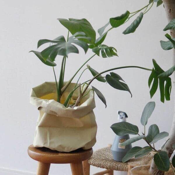 テントやトラックの幌などで使われる丈夫な生地ターポリン製。ランドリーバッグ、ダストボックス、屋外の収納など様々な使い方が可能です。容量は約16リットル。