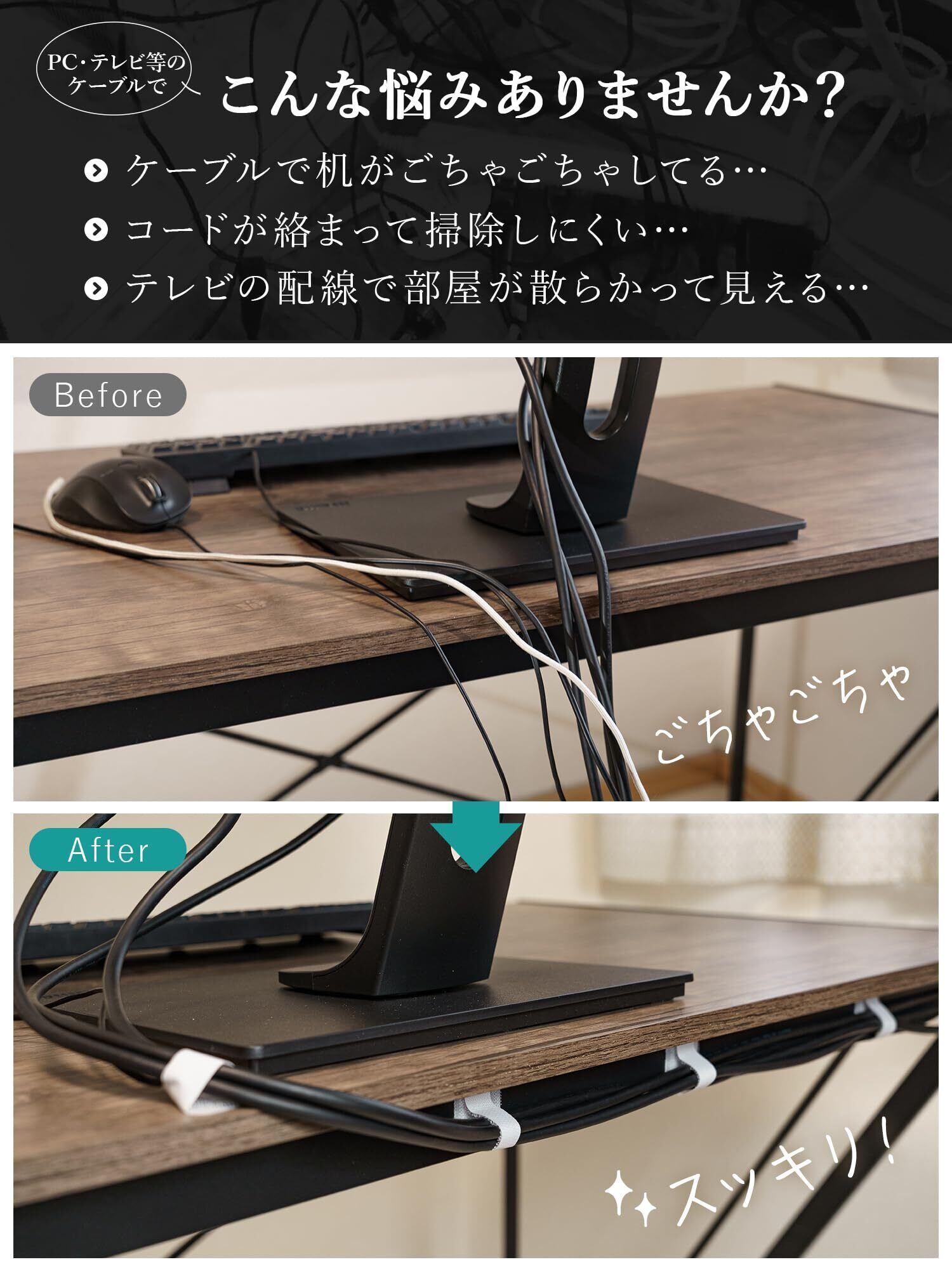 【繰り返し使えるマジックテープ式】ケーブルを留める面はマジックテープ式で脱着がかんたん。何度でも貼って剥がせて使えるので経済的です。