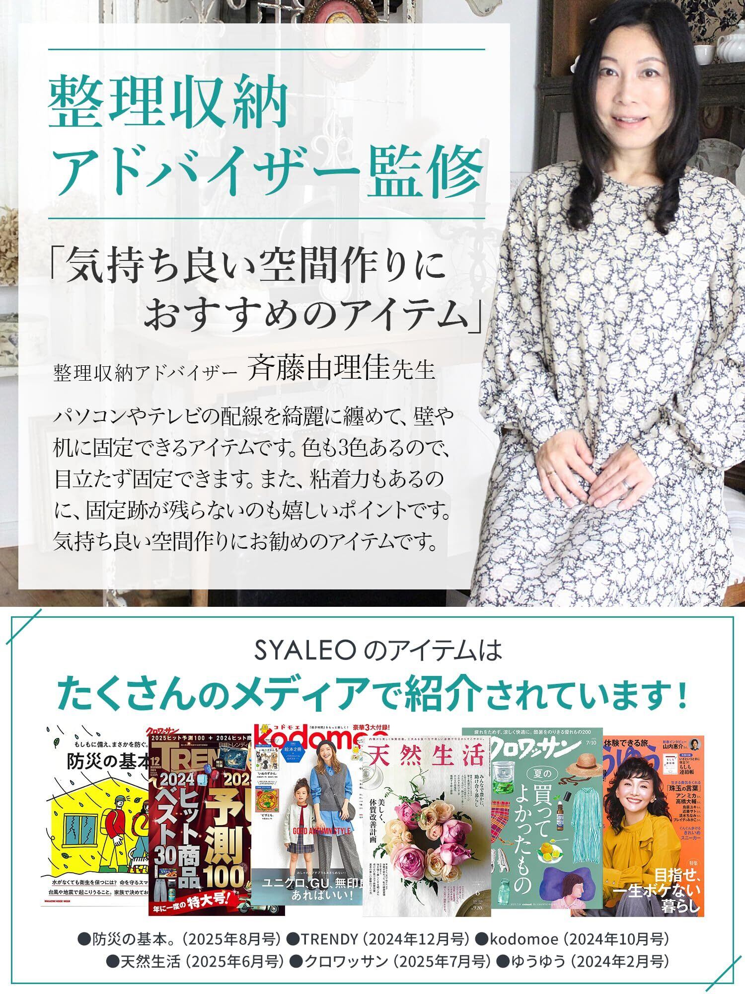 【整理収納アドバイザー監修】整理収納アドバイザー「齋藤由理佳先生」監修。「パソコンやテレビの配線を綺麗に纏めて、壁や机に固定できるアイテムです。色も3色あるので、目立たず固定できます。また、粘着力もあるのに、固定跡が残らないのも嬉しいポイントです。気持ち良い空間作りにお勧めのアイテムです。」