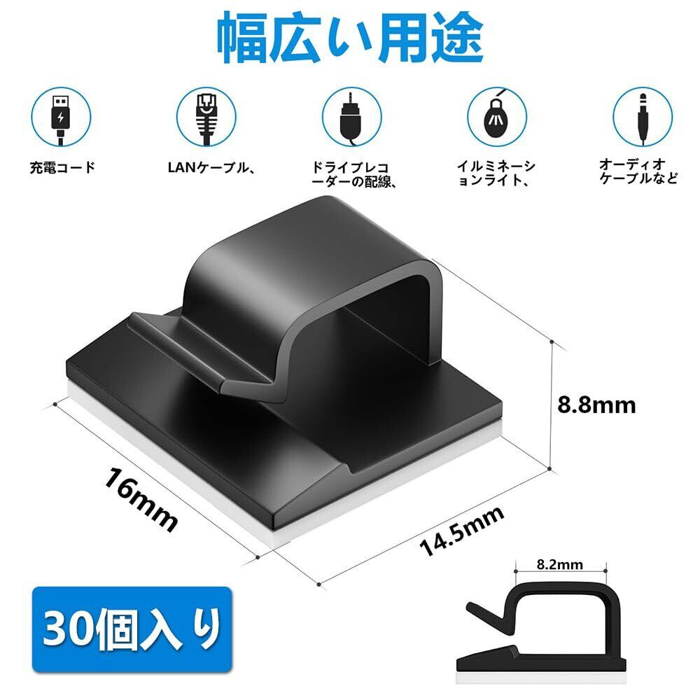 ケーブルクリップ 30個セット 強力粘着 剥がせる コードホルダー 配線固定クリップ (ブラック) 車 デスク 壁面 配線整理 収納 粘着シート付き 小さくて目立たない (ブラック)