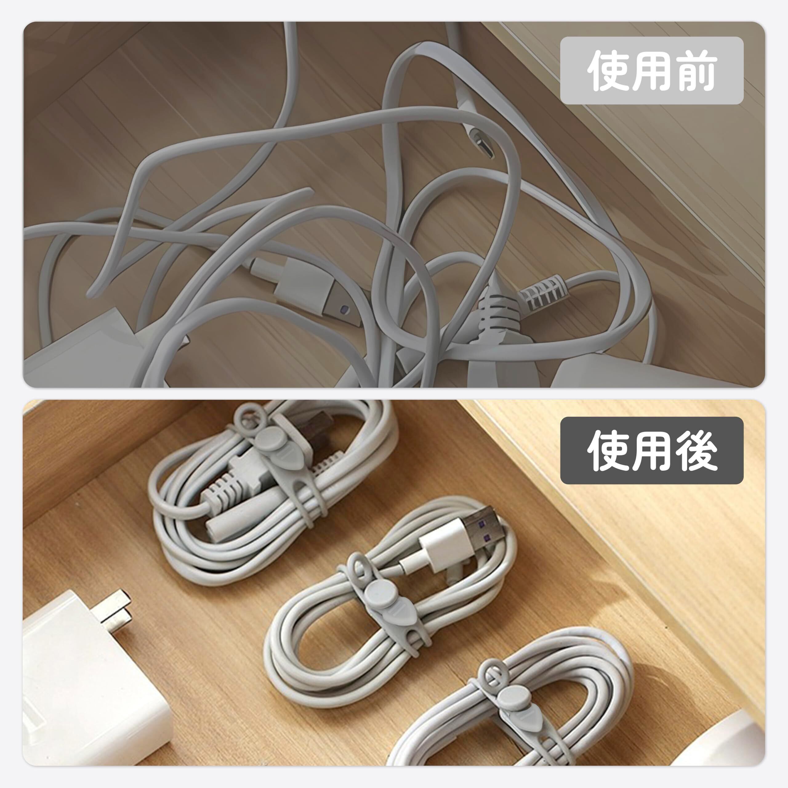 【シリコン・繰り返し使用可能】シリコン素材の特徴は、柔らかいだけでなく耐久性にも強い点です。このケーブルバンドは上質なシリコーン素材で作られて、繰り返し使用しても変形することはありません