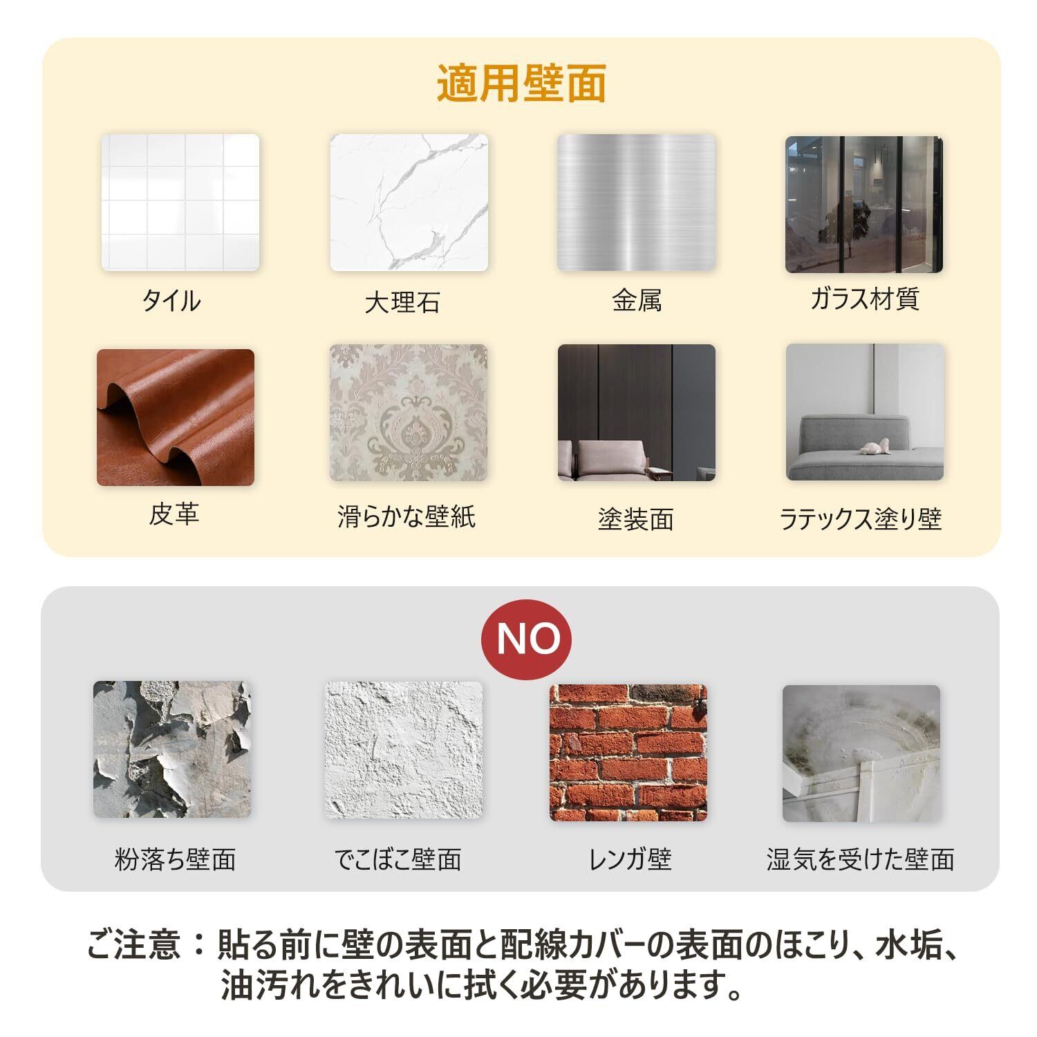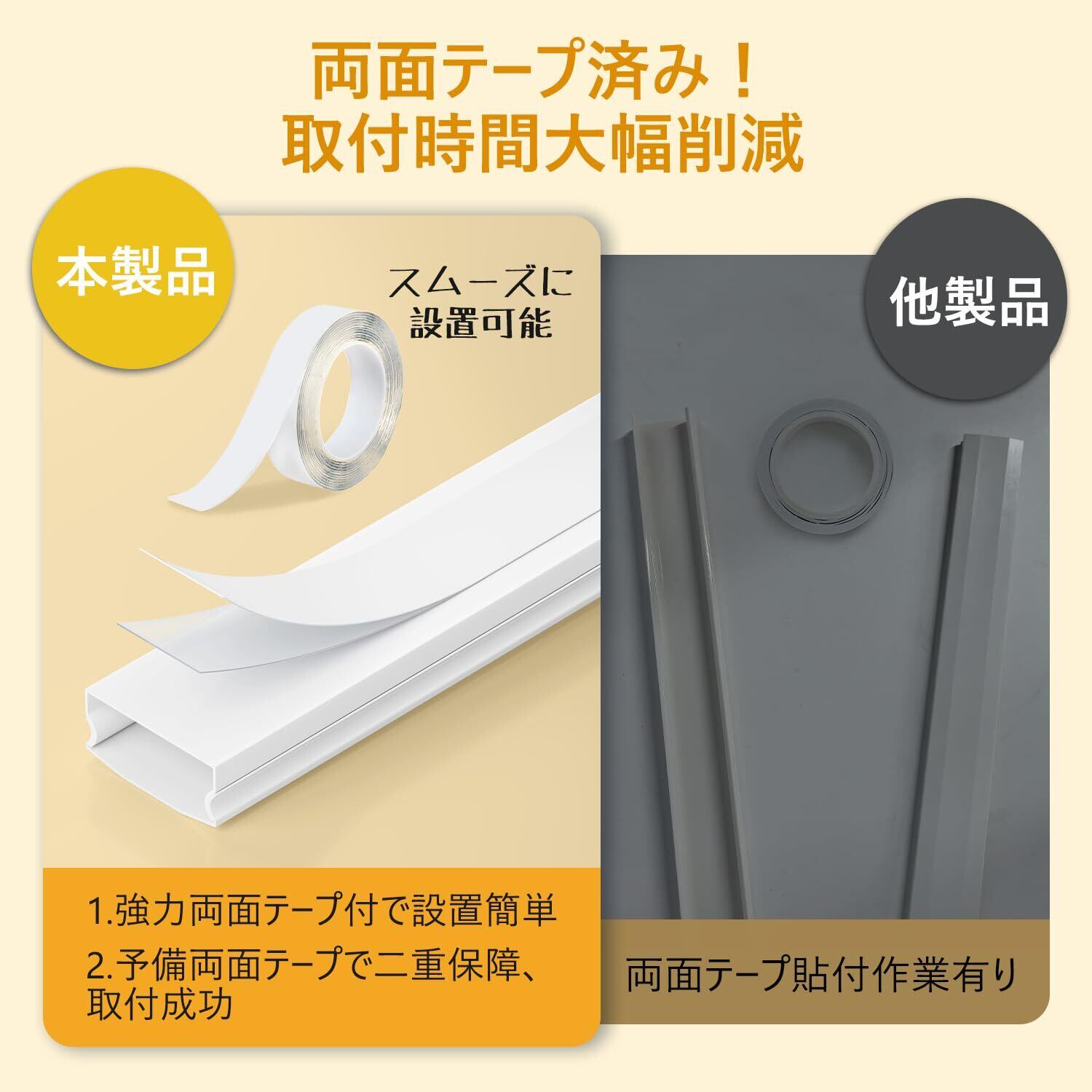 【両面テープ付きで簡単取り付け】取り付けに工具は不要!製品に両面テープが貼付済みのため、壁面、床面、机など平坦な場所に簡単に接着できます。強力な粘着力で脱落しにくく、また必要に応じて取り外しも可能で、壁面を傷つけにくい設計です。初心者でも短時間で設置完了し、すぐにケーブル隠しの効果を享受できます。