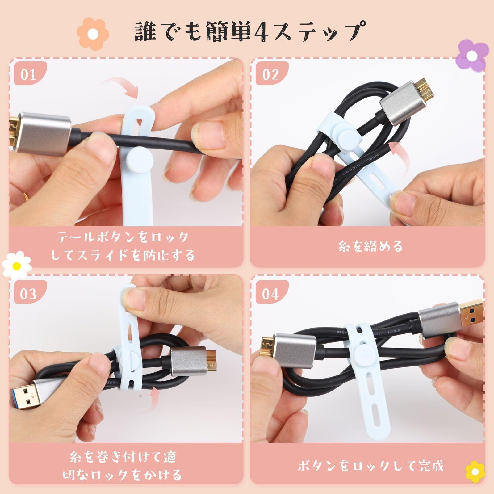 【再利用可能】:柔軟なシリコン素材により、ケーブルタイは何度使用しても元の形状を維持します。 このシリコンネクタイはベルクロのように粗くなることはなく、環境にやさしい代替品であることは間違いありません。
