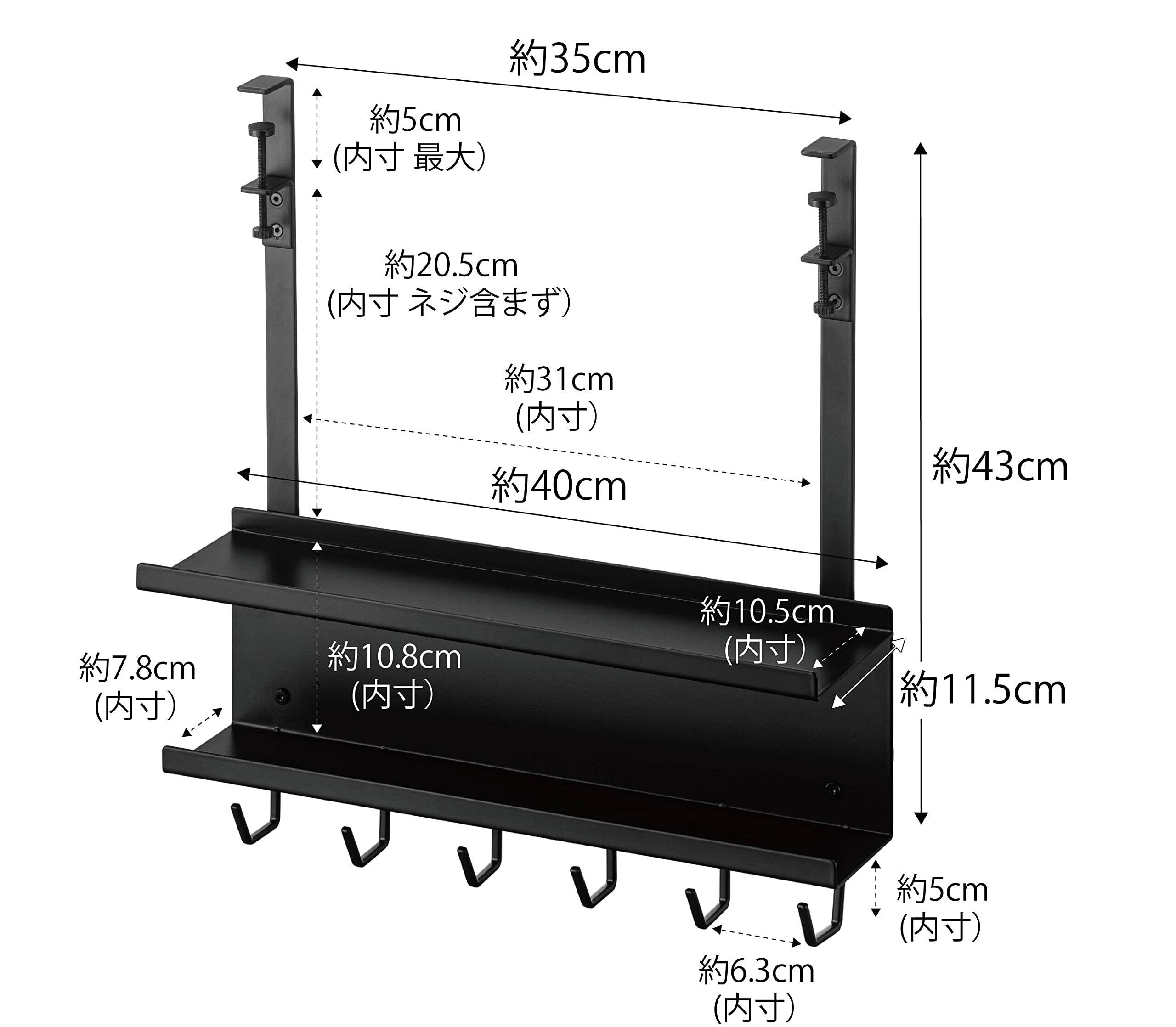 内寸:上段:約W40×D10.5×H20.5cm(調節ネジ含まず)下段:約W40×D7.8×H10.8cm