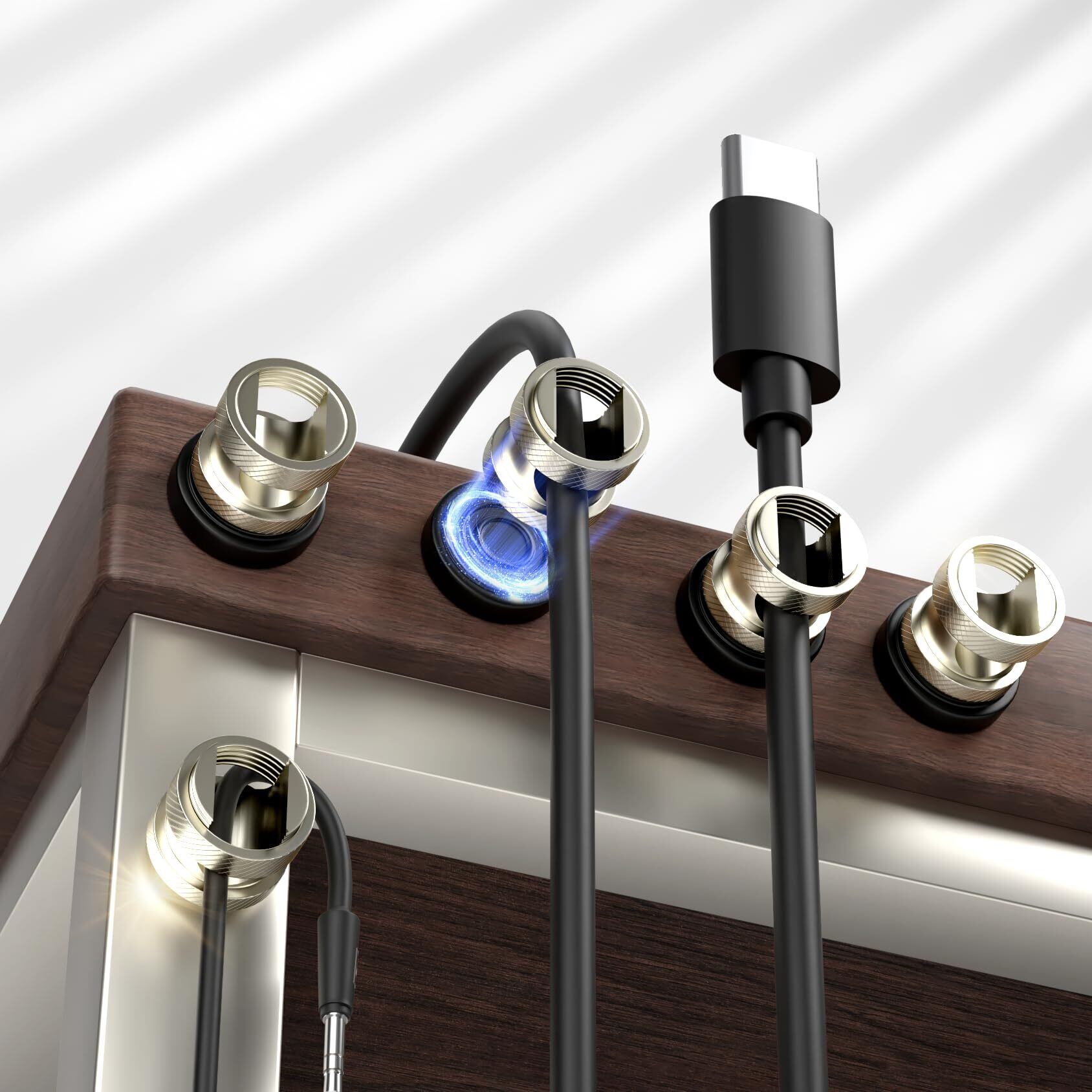 「高級感あふれるステンレス製」高強度ステンレス製で、表面は微細なメッシュ加工で、柔らかな金属光沢を放ちます。従来のプラスチック製ケーブルオーガナイザーとは一線を画し、デスクや車内、寝室などにぴったりフィットします。シンプルでエレガントなデザインが、どの空間にも自然に溶け込みます。