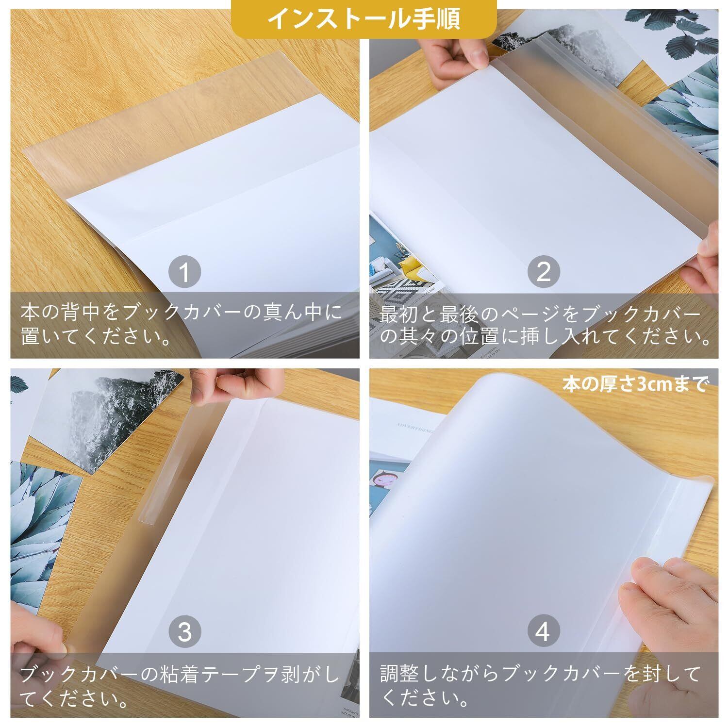 【手入れ簡単】 操作が簡単です。本の背中をブックカバーの真ん中に置いてください。最初と最後のページをブックカバーの其々の位置に挿し入れてください。ブックカバーの粘着テープヲ剥がしてください。調整しながらブックカバーを封してださい。左片方は粘着テープ付き、脱着しにくいです。