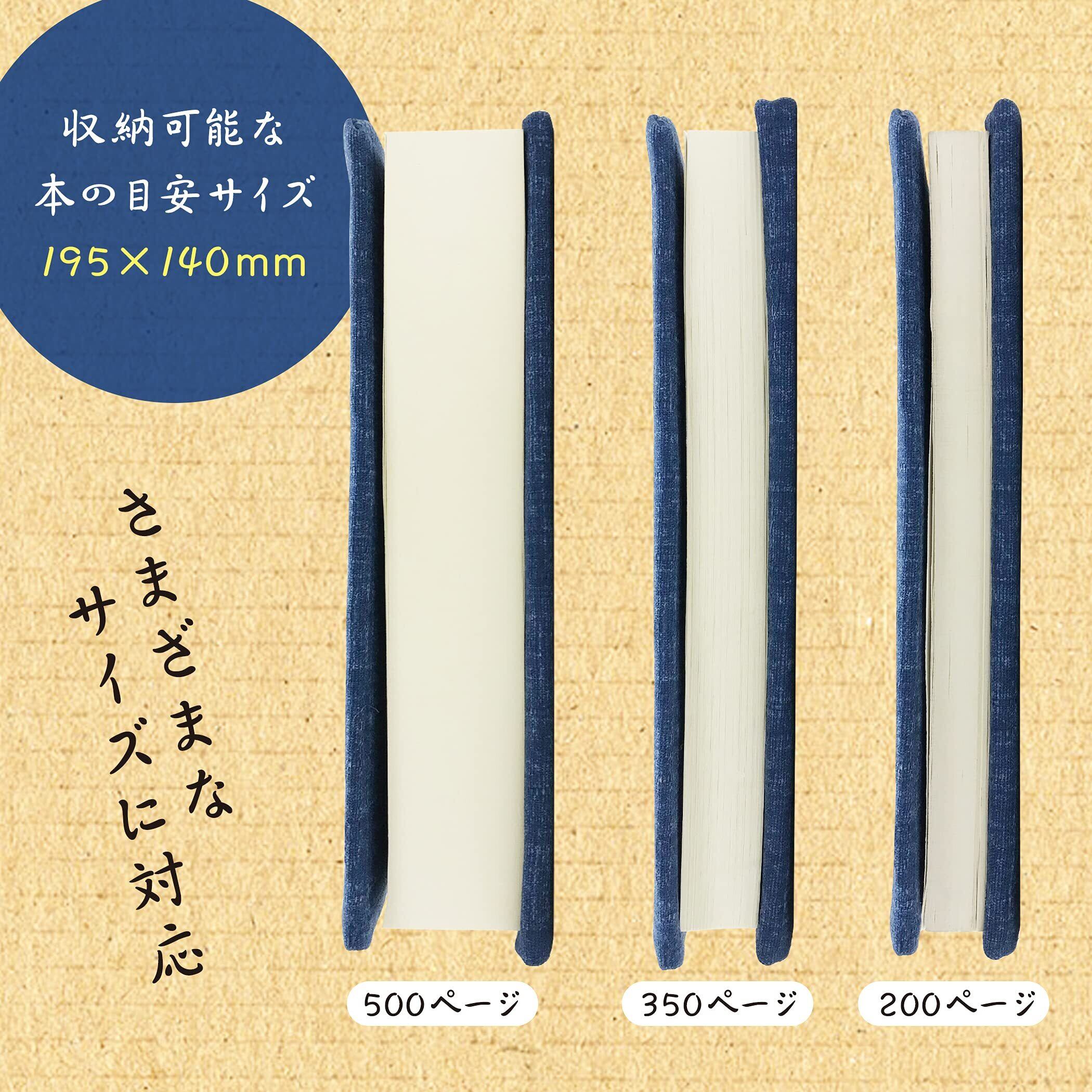 【調整可能なブックカバー】片面を縫い止めしていないので、本の厚みに合わせて楽々収納できる調整可能なブックカバーです。内側にゴムを付けているので本の表紙がめくれてしまう煩わしい思いをせず読書を楽しめます。