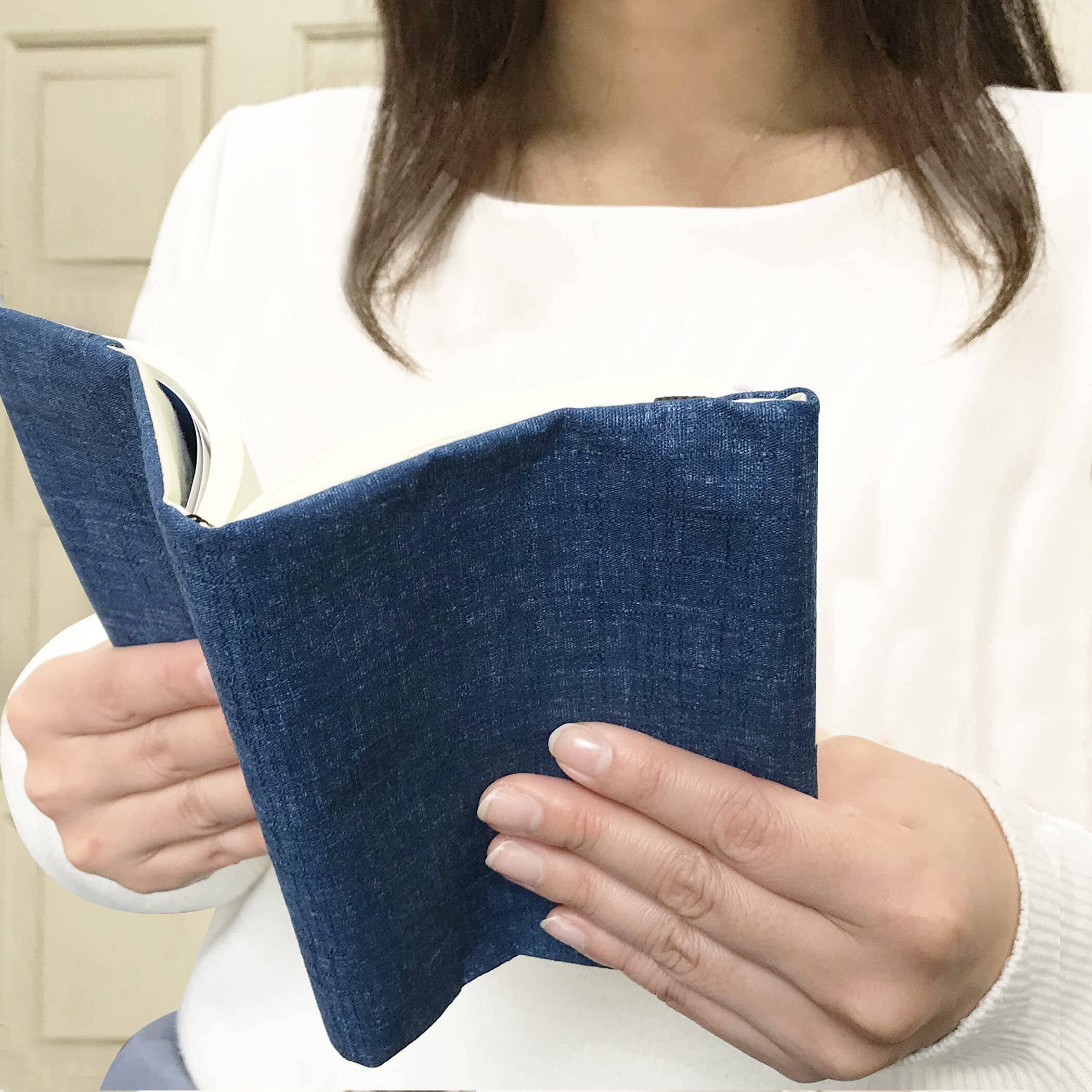 【場所を選ばす読書を楽しめる】大切な本を傷めず、汚さず持ち運びできます。タイトルが隠せるので、電車やバスの中などの人目に付きやすい場所でも安心して読書を楽しめます。また、しおり紐はブックカバー本体に付いているので混雑している場所でも落とすことなく安心してお使いできます。