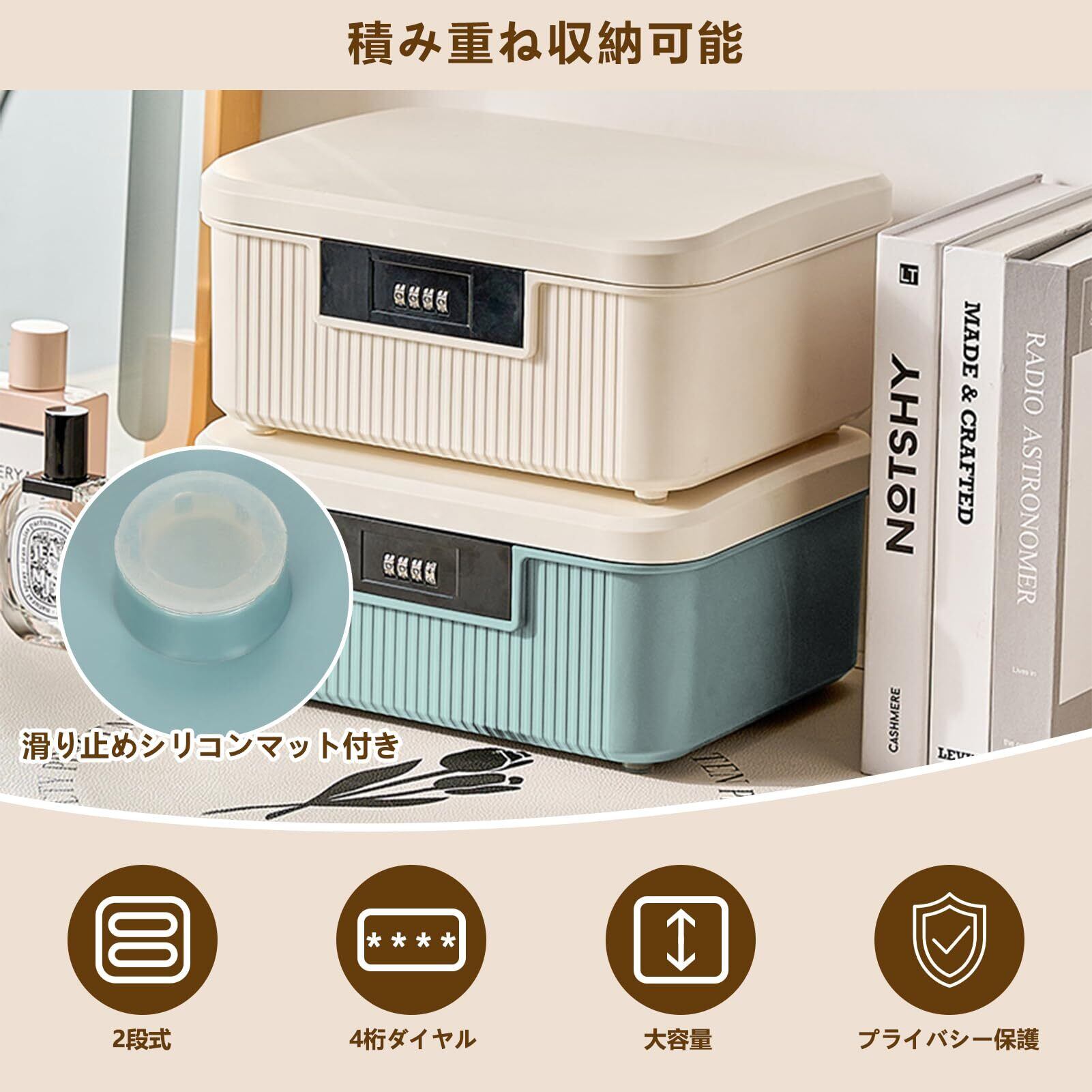 【新着商品】yazi 金庫 家庭用 小型 ダイヤル式 コンビネーションロック 収納ボックス 大容量2段式 9L ミニ金庫 プラスチック製 貯金箱 キャッシュ・重要書類・銀行カード 貴重品入れ (ブルー, M)