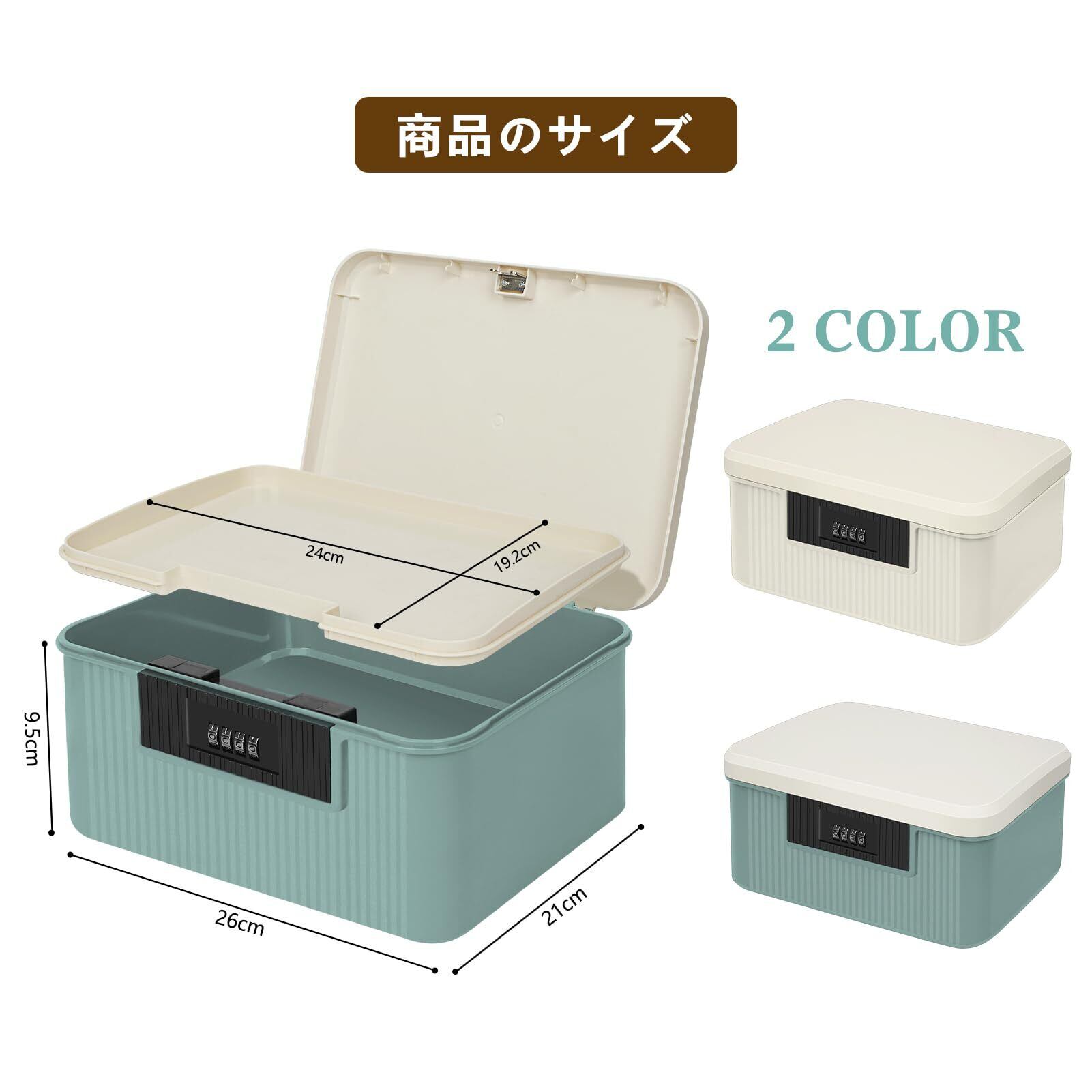 yazi 金庫 家庭用 小型 ダイヤル式 コンビネーションロック 収納ボックス 大容量2段式 9L ミニ金庫 プラスチック製 貯金箱 キャッシュ・重要書類・銀行カード 貴重品入れ (ブルー, M)