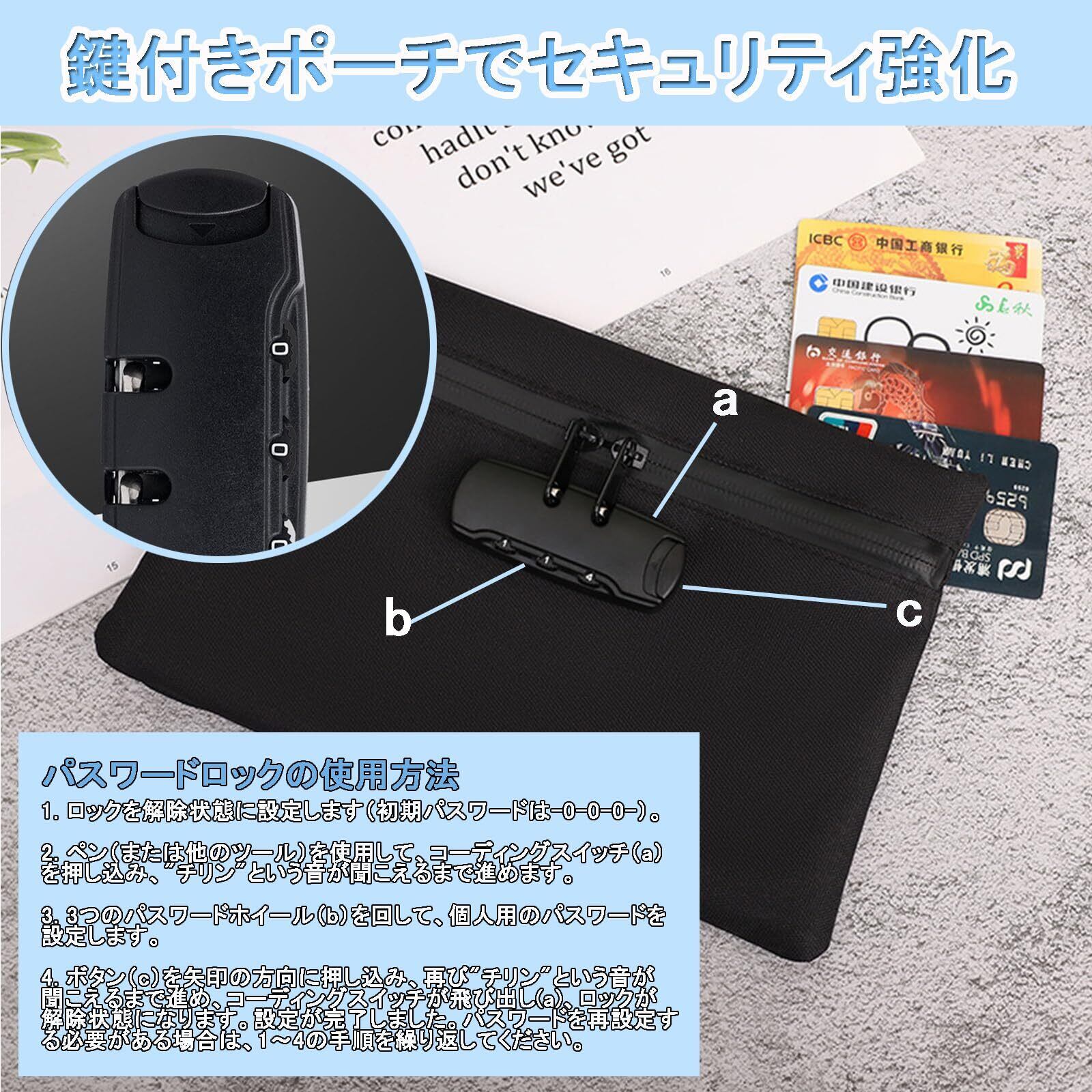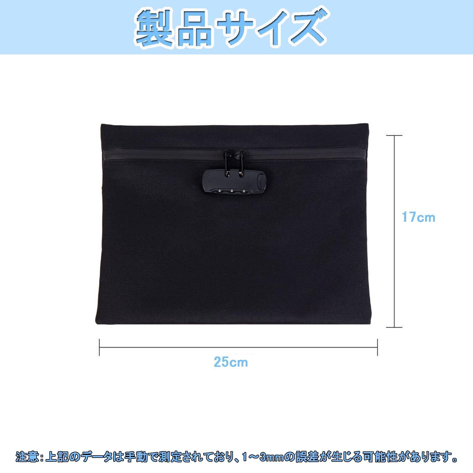 耐火バッグ 鍵付き袋 小型 鍵付きポーチ 収納ボックス 集金袋 貴重品ボックス 盗難防止 防犯バッグ 小物 鍵収納 大容量 ポータブル 旅行 出張 カギ管理 通帳保管ケース (ブラック)