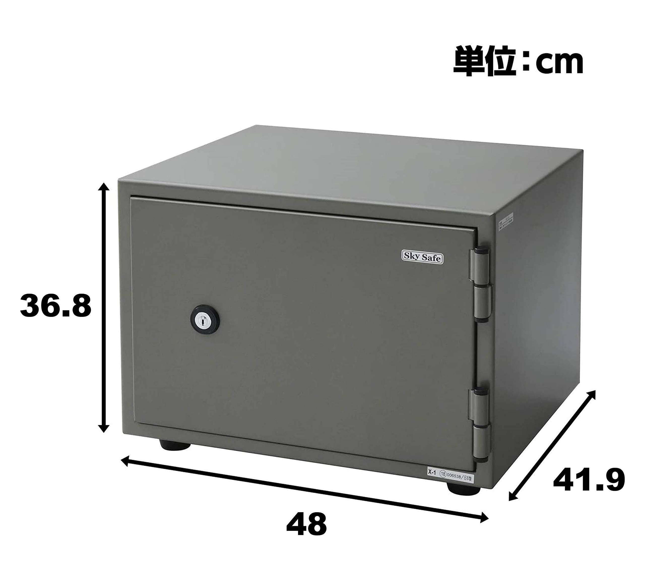 ●リバーシブル錠のみのワンキータイプ●家庭用耐火金庫に適したコンパクトサイズ●庫内はA4判の書類が収納できるトレー1段付き●JIS一般紙用1時間標準加熱試験合格品●安心の日本製●内寸:幅34.8×奥行25.7×高さ21.4cm