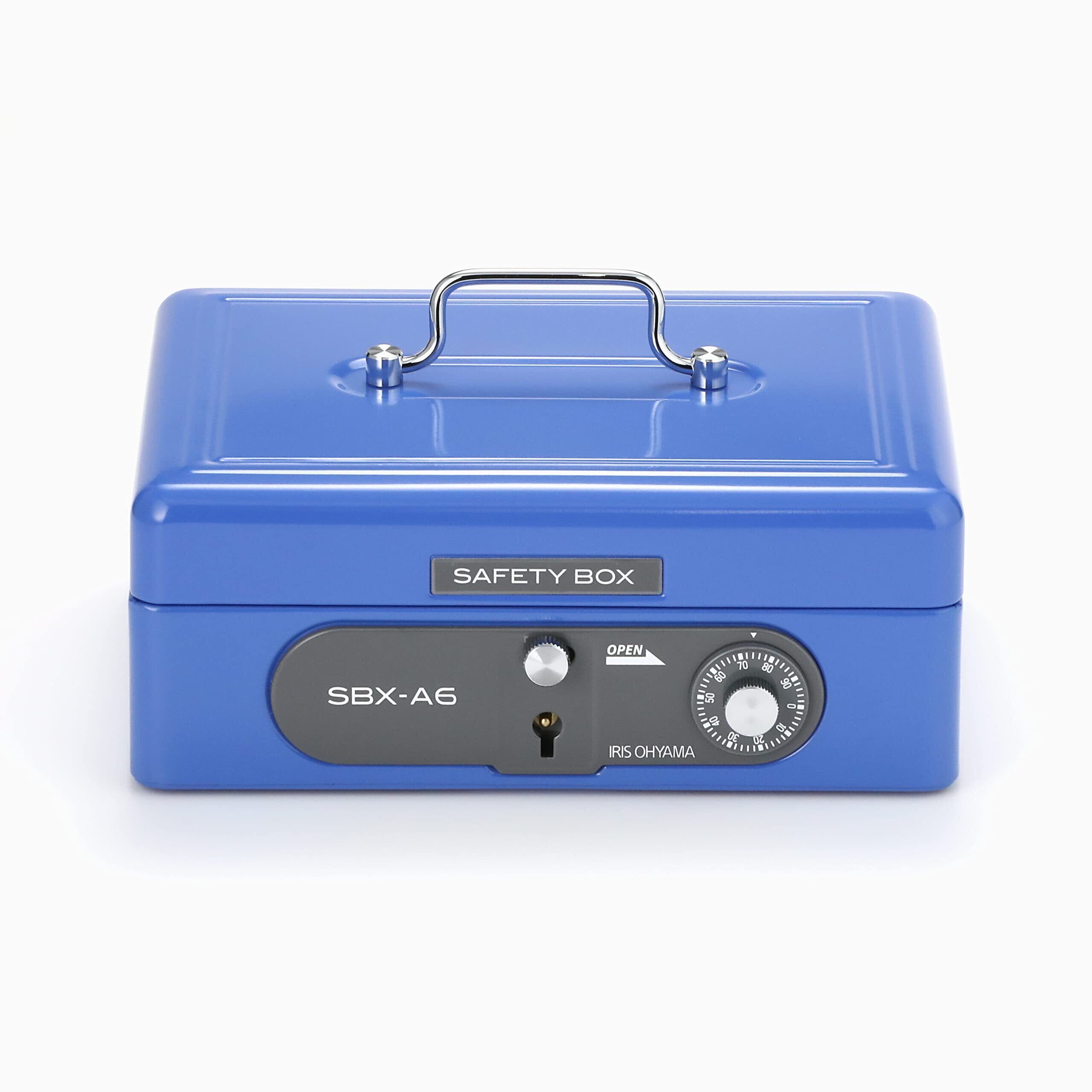 【新春セール】アイリスオーヤマ 金庫 手提げ金庫 ダイヤル式 ダブルロック A6 コンパクト SBX-A6 ブルー