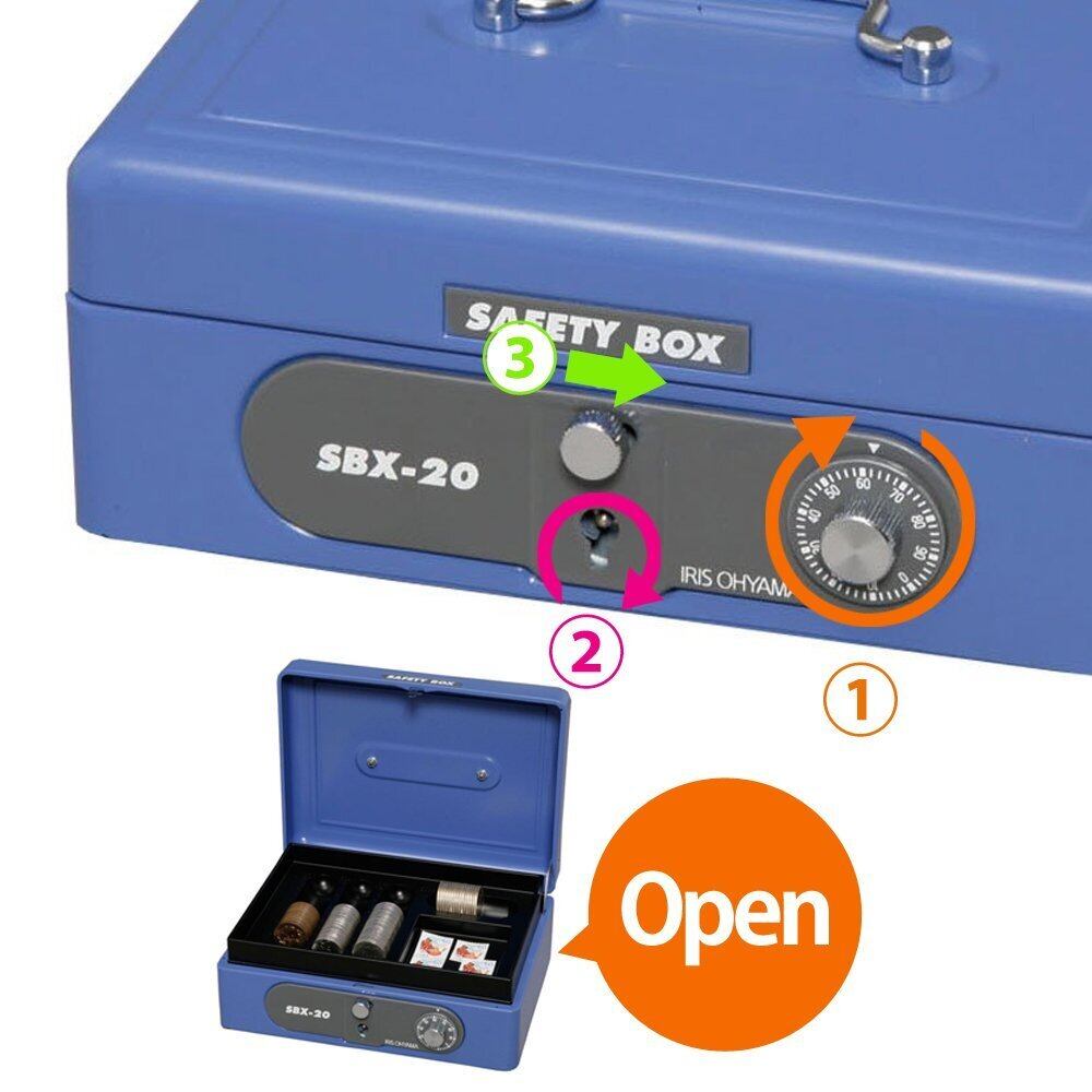 アイリスオーヤマ 金庫 手提げ金庫 ダイヤル式 ダブルロック A6 コンパクト SBX-A6 ブルー