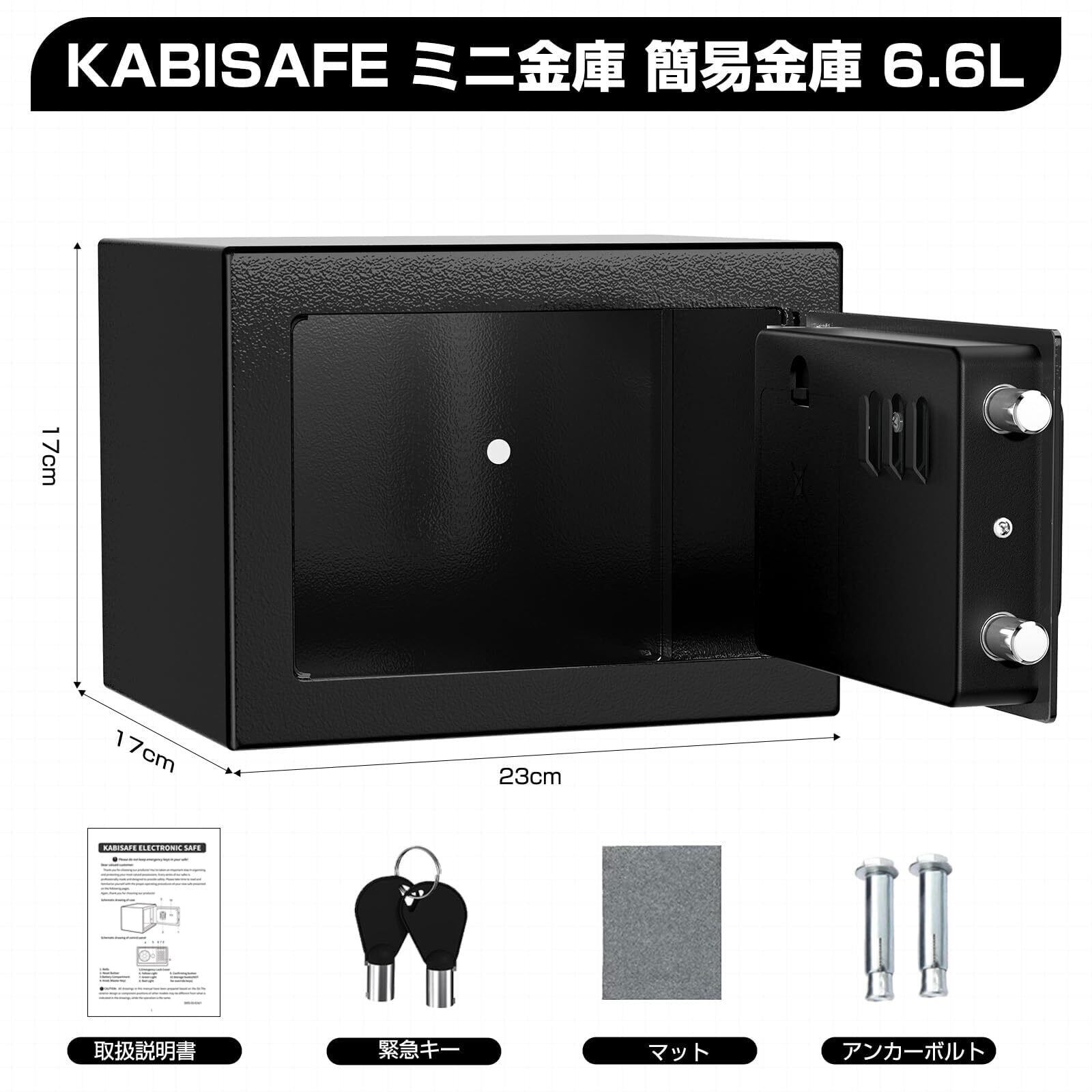【新春セール】金庫小型 ミニ金庫 テンキー式 小型簡易保管庫 貯金箱 警報アラーム付き 壁付け対応 ホテル金庫 防犯セキュリティー ボックス 子供用・学生用 店舗用 緊急キー付き 日本語取扱説明書 6.6L W23×D17×H17CM (ブラック)