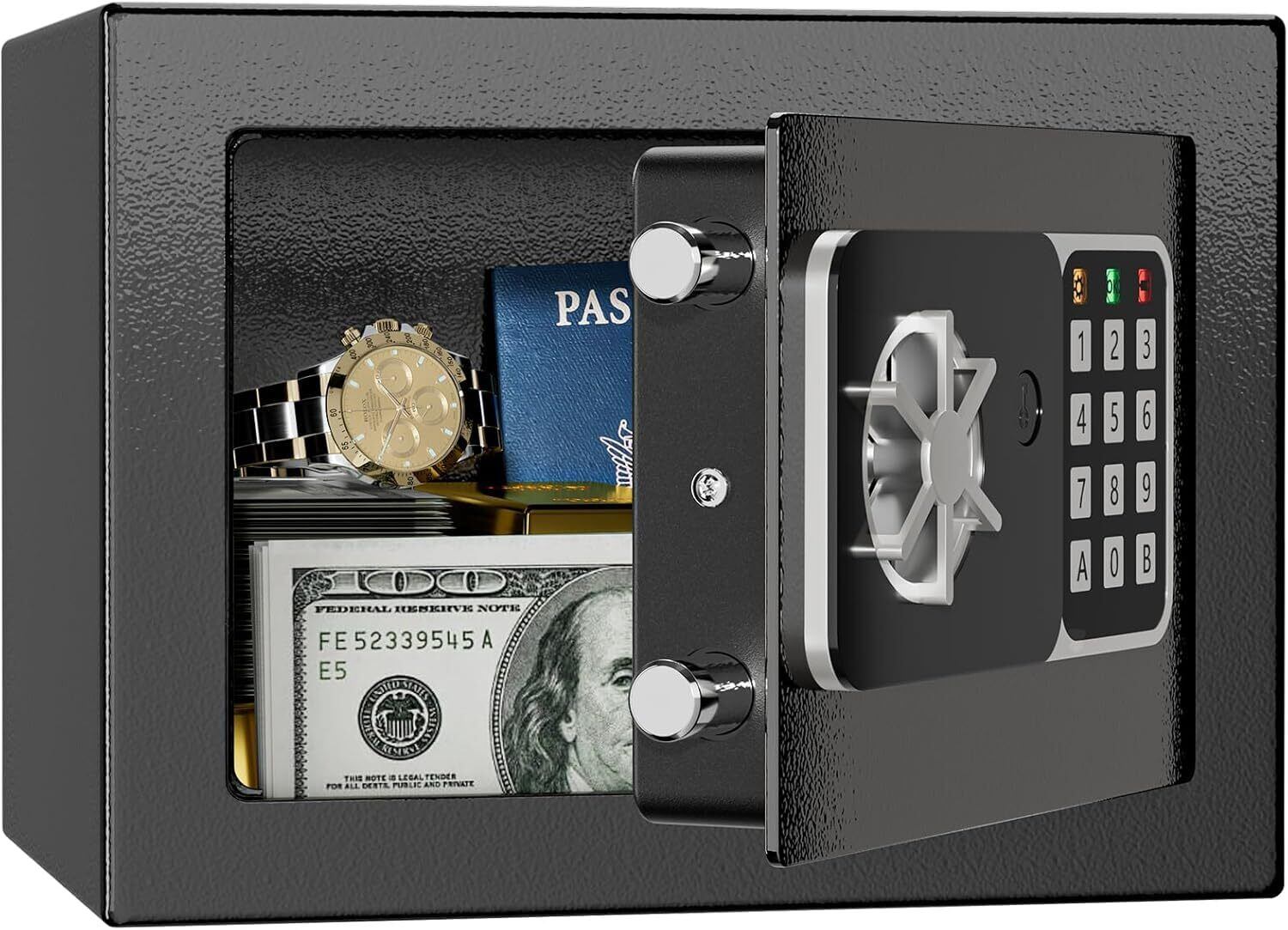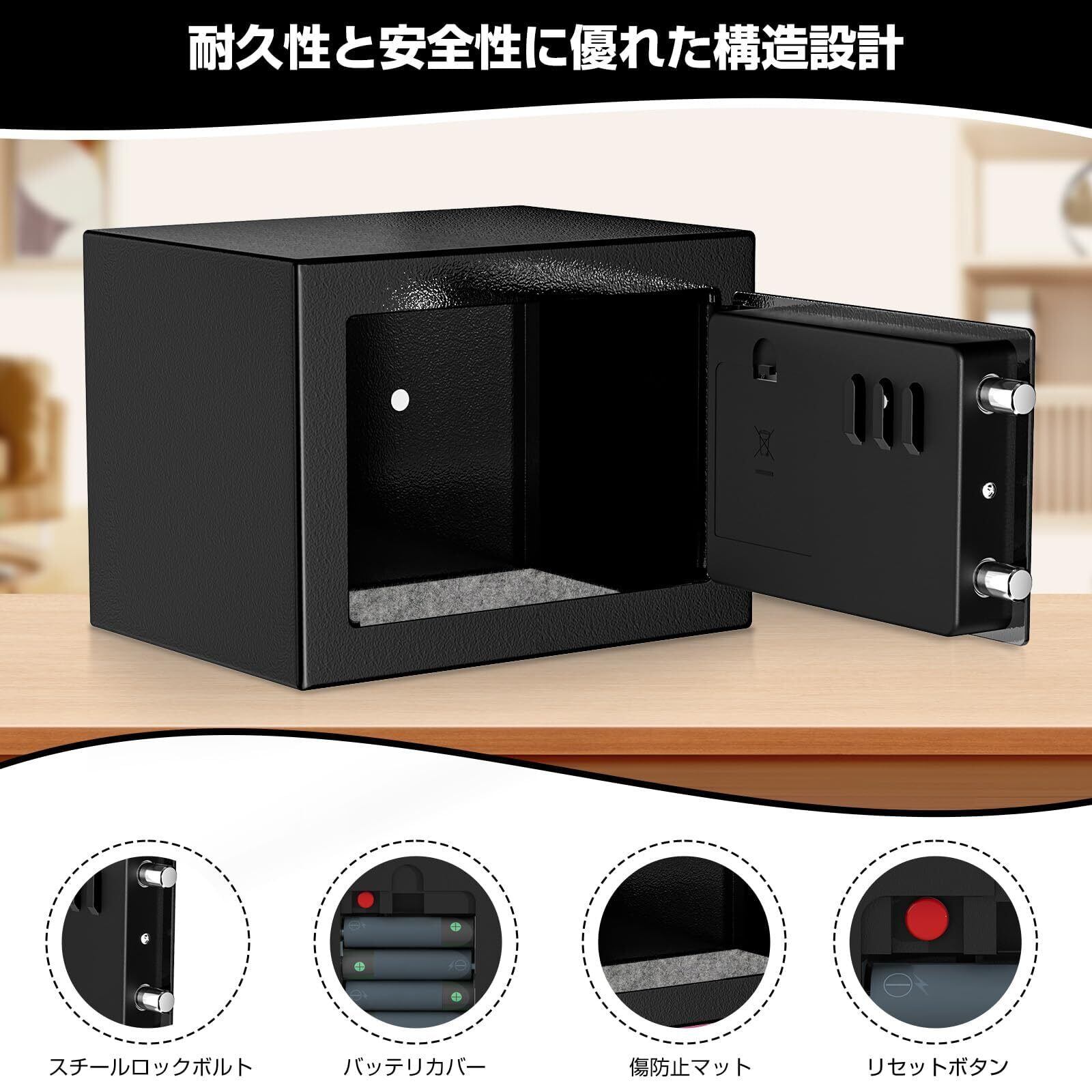 【頑丈設計で高い防犯性能】 3.5cm厚の頑丈なドア、直径2*1.5cmの高強度ボルト、そして全金属製の一体型ドアパネルを採用。プラスチック製より壊れにくいので、安全性が格段にアップし、大切な貴重品をしっかり守ってくれます。