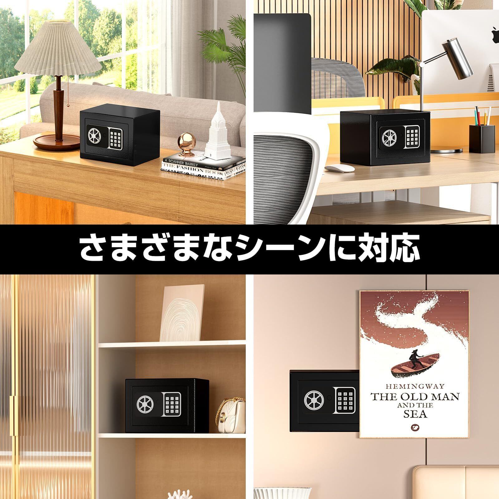 【様々なシーンで大活躍】 外寸:幅23×奥行17×高さ17cm、内寸:幅22.6×奥行13×高さ16.6cm。重量:2.35kg。通帳・貴重品はもちろん、パスポートや保険証などの個人情報を安全に保管できるコンパクト、軽量な電子金庫です。ご家庭やオフィス、ホテルはもちろん、子どもの貯金箱としてもおすすめです。【ご注意】金庫/貯金箱として設計されておりますため、本来の用途以外に使用しないでください。