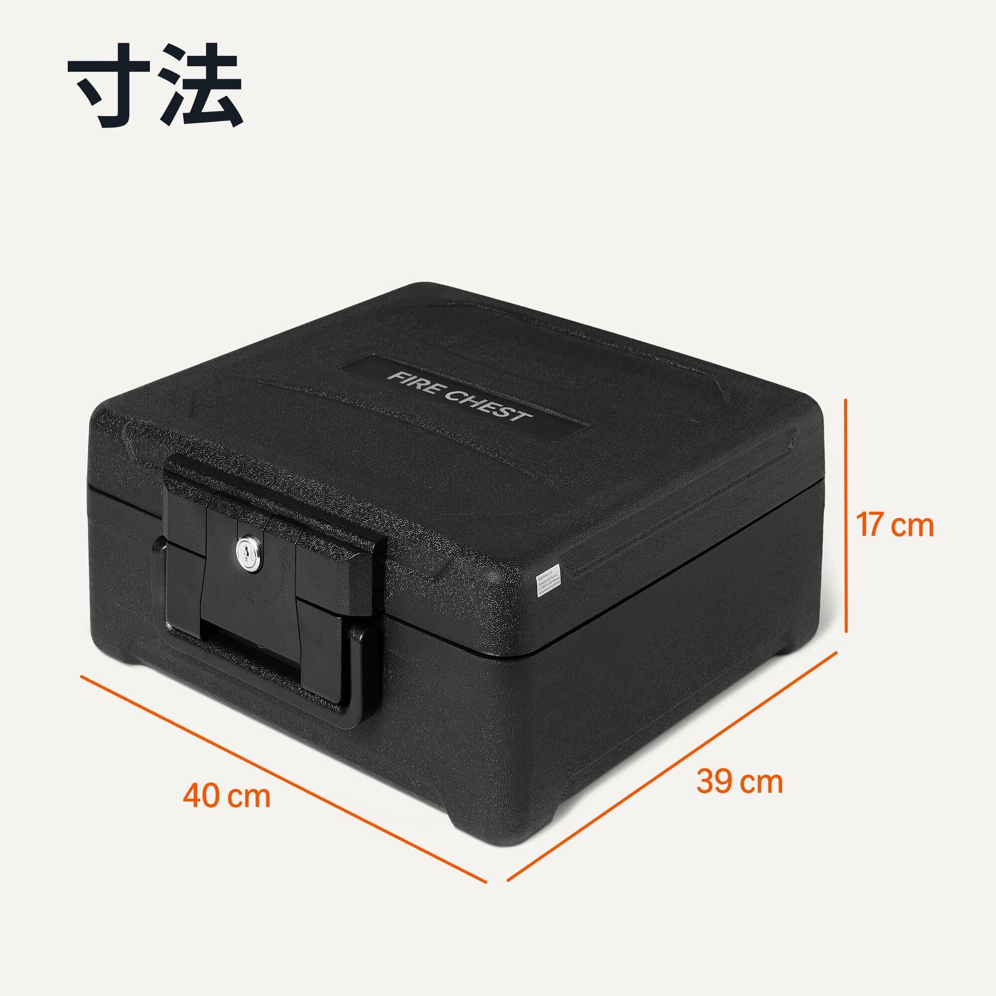 【新着商品】ベーシック 耐火金庫 家庭用 業務用 シリンダー式 鍵付きキーロック 11L (奥行39.0 × 幅40.0 × 高さ17.0 cm) ブラック