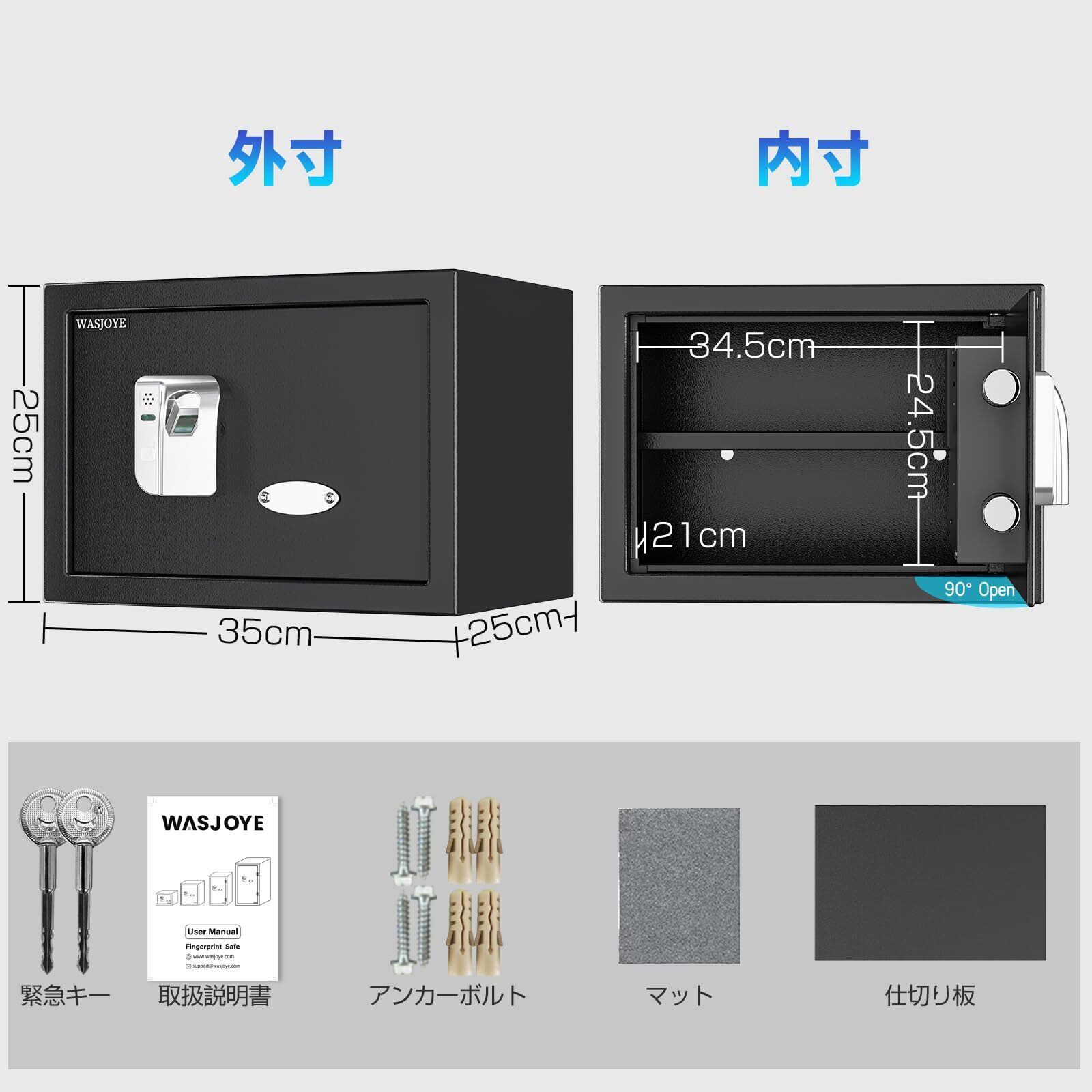 WASJOYE 指紋認証式 金庫 小型 指紋金庫 家庭用 店舗用 業務用 会社用 保管庫 A4用紙対応 床・壁に固定可能 鍵付き 防犯セキュリティーボックス おしゃれなデザイン指紋認証セキュリティーボックス (23.0L)