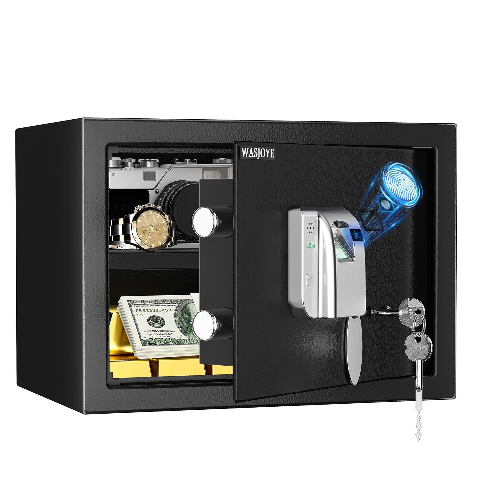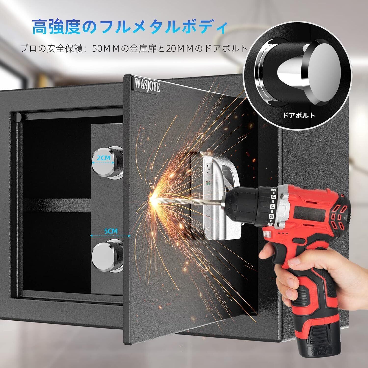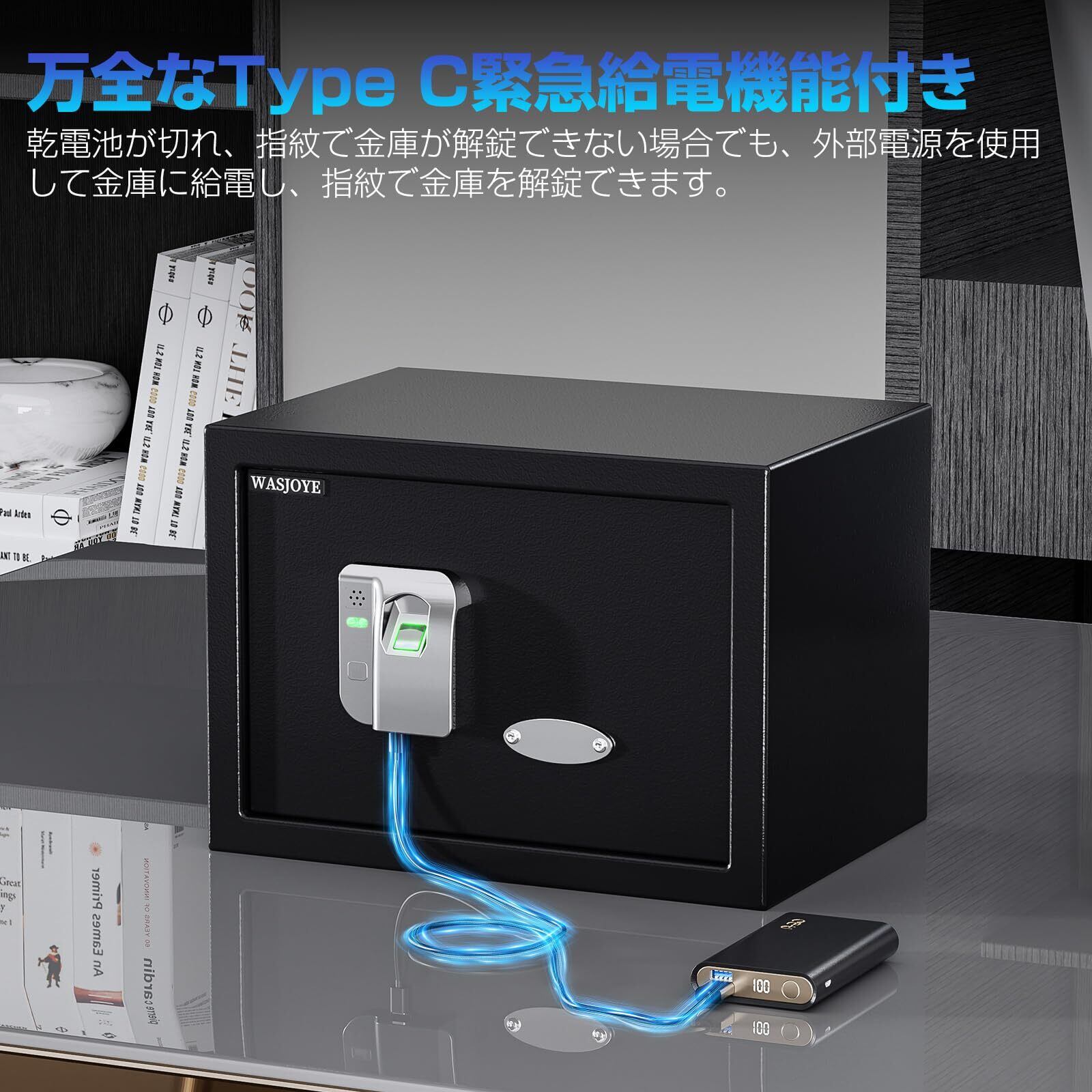 【在庫処分】WASJOYE 指紋認証式 金庫 小型 指紋金庫 家庭用 店舗用 業務用 会社用 保管庫 A4用紙対応 床・壁に固定可能 鍵付き 防犯セキュリティーボックス おしゃれなデザイン指紋認証セキュリティーボックス (23.0L)