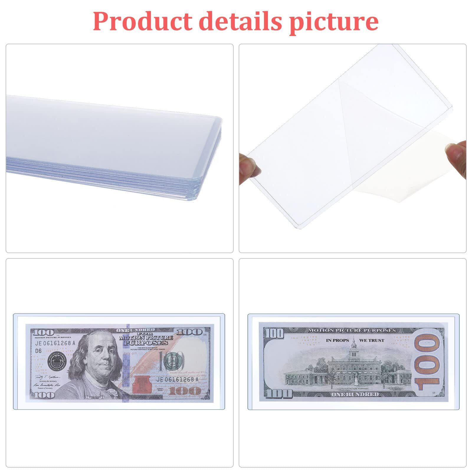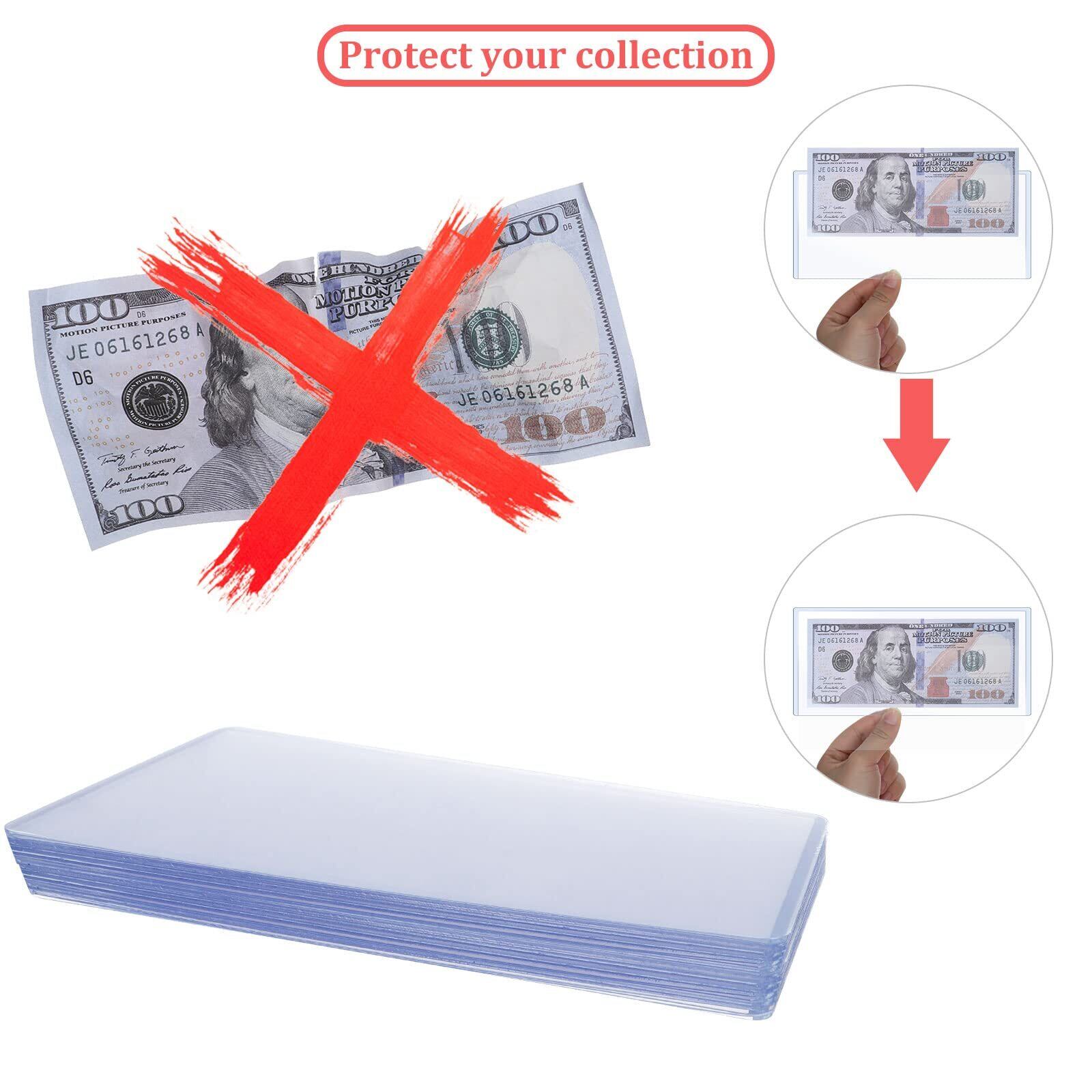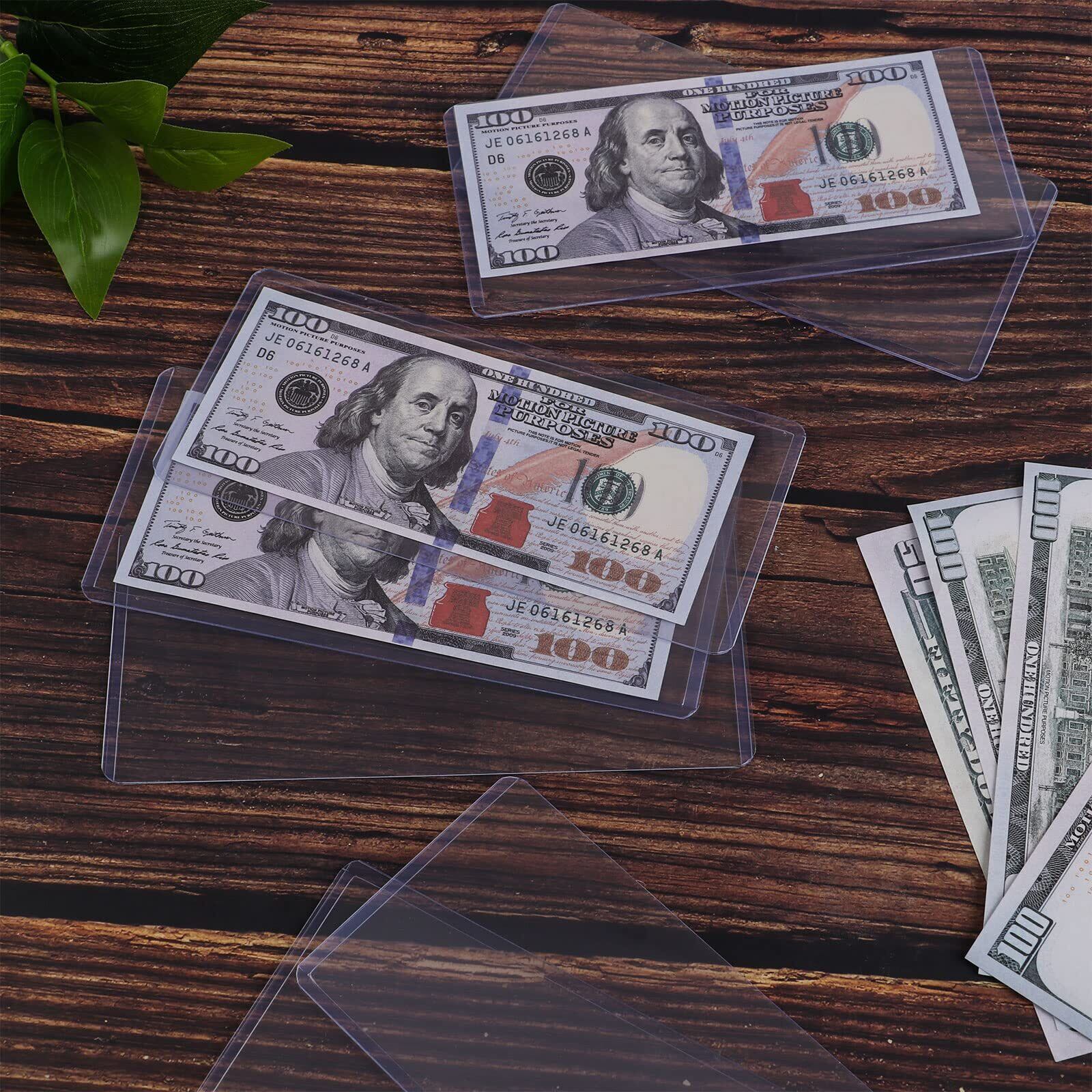 【2022最新】20個 通貨ホルダー ポリ塩化ビニル紙幣ホルダー 透明紙幣ディスプレイホルダー 保護フィルム付き 通常の紙幣保護ケース用品 6.9 x 3.1インチ