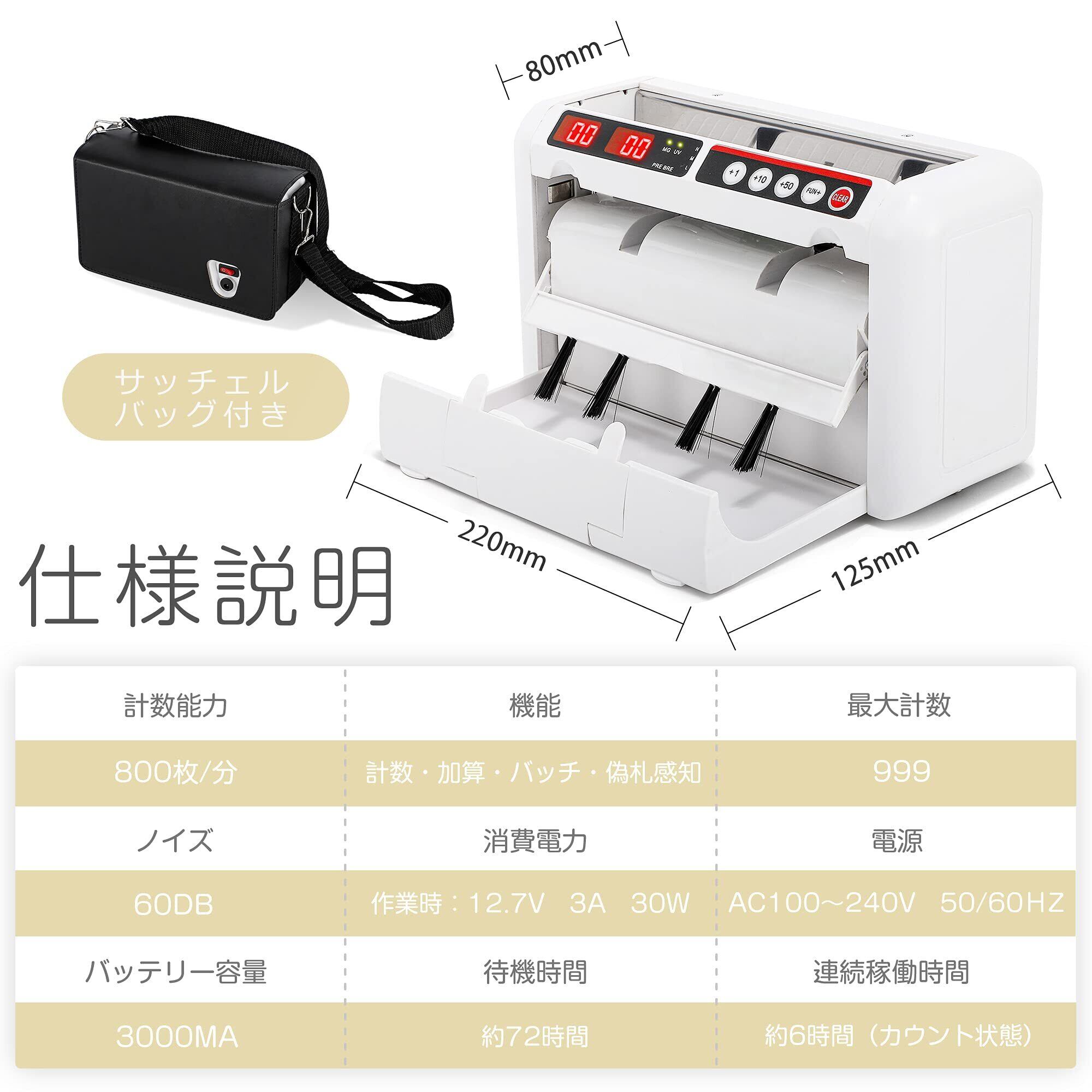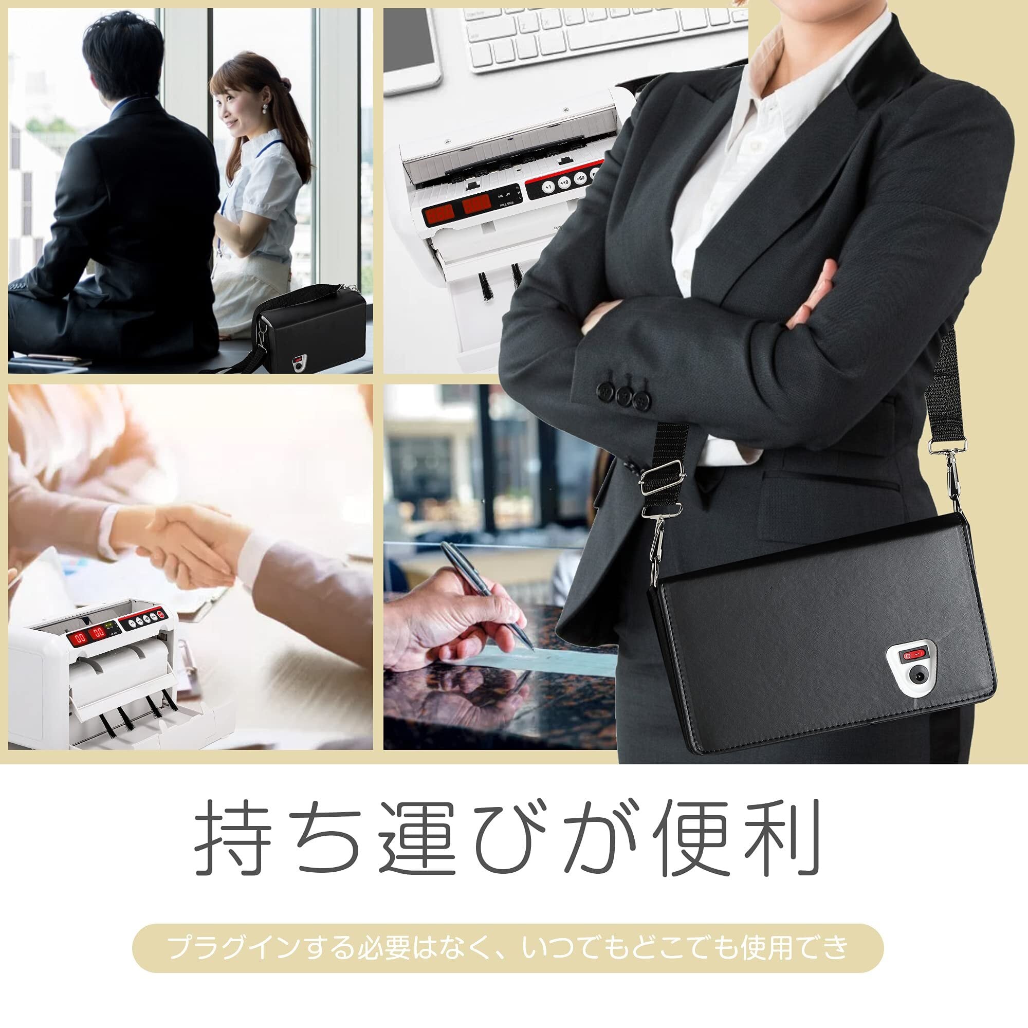 【多機能札計数・コンパクト便利】速い計測だけでなく、加算・バッチ・UV/MG偽札感知の機能も搭載され、多様なニーズに満足でき。キャリーバッグで持ち運びできるから、外出先でも問題なし。