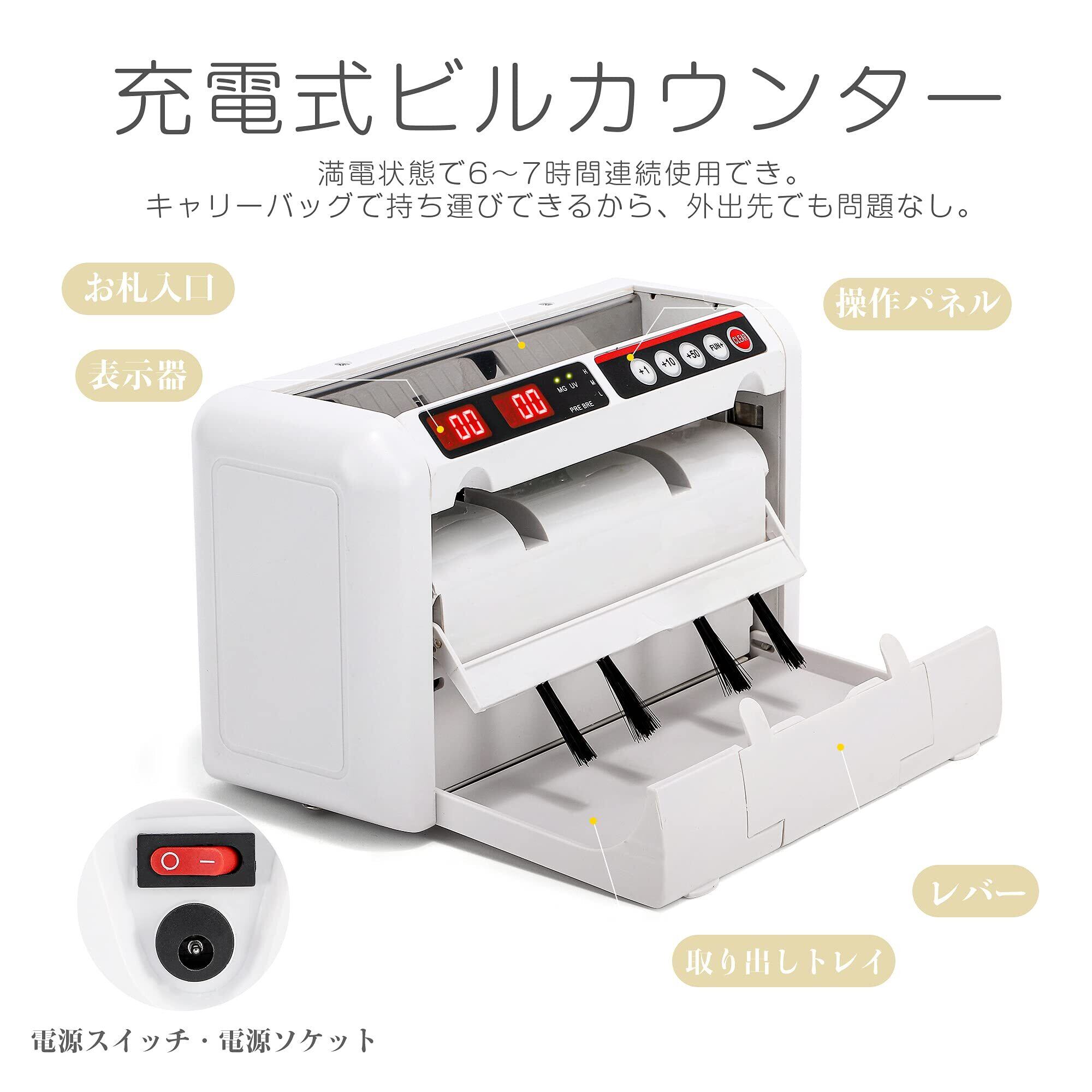 【充電式ビルカウンター】満電状態で6~7時間連続使用でき。デパート・銀行・スーパー・チケットショップ・財務会計・コンビニなど、どんな目的で使うでも重宝になれる。