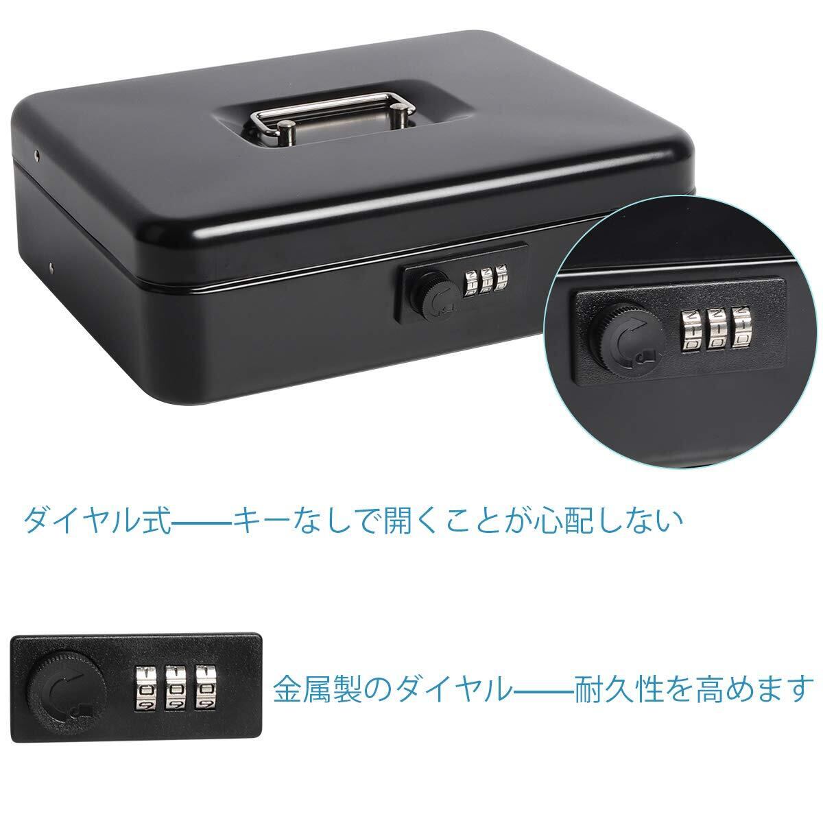 【新着商品】(トモリ)Tomori 手提げ金庫 コインケース 3つスプリングクリップ ダイヤル式 貯金箱 紙幣整理 金属製 (ブラック, L)
