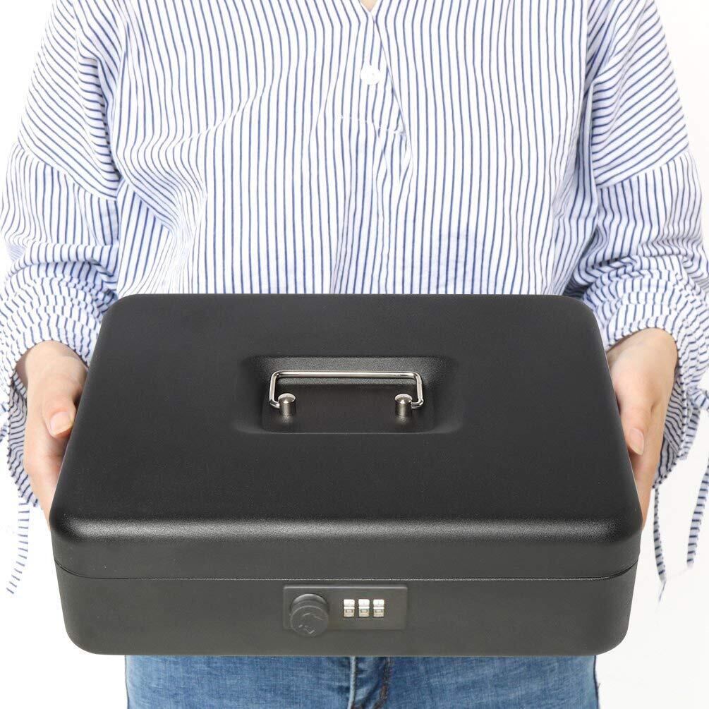 Jssmst(ジェスマット) 手提金庫 ダイヤル式 会計用コインケース 3つスプリングクリップ 紙幣整理 金属製 30x24x8.8cm (黒 ダイヤル)