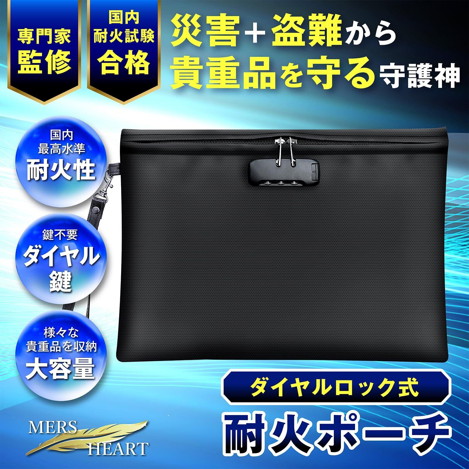 MERSHEART 鍵付き ポーチ A4 【内ポケット付】 耐火バッグ 【防災・防犯の専門家監修】 手提げ金庫 セキュリティバッグ 集金袋 集金ポーチ 貴重品 小型金庫 防火袋