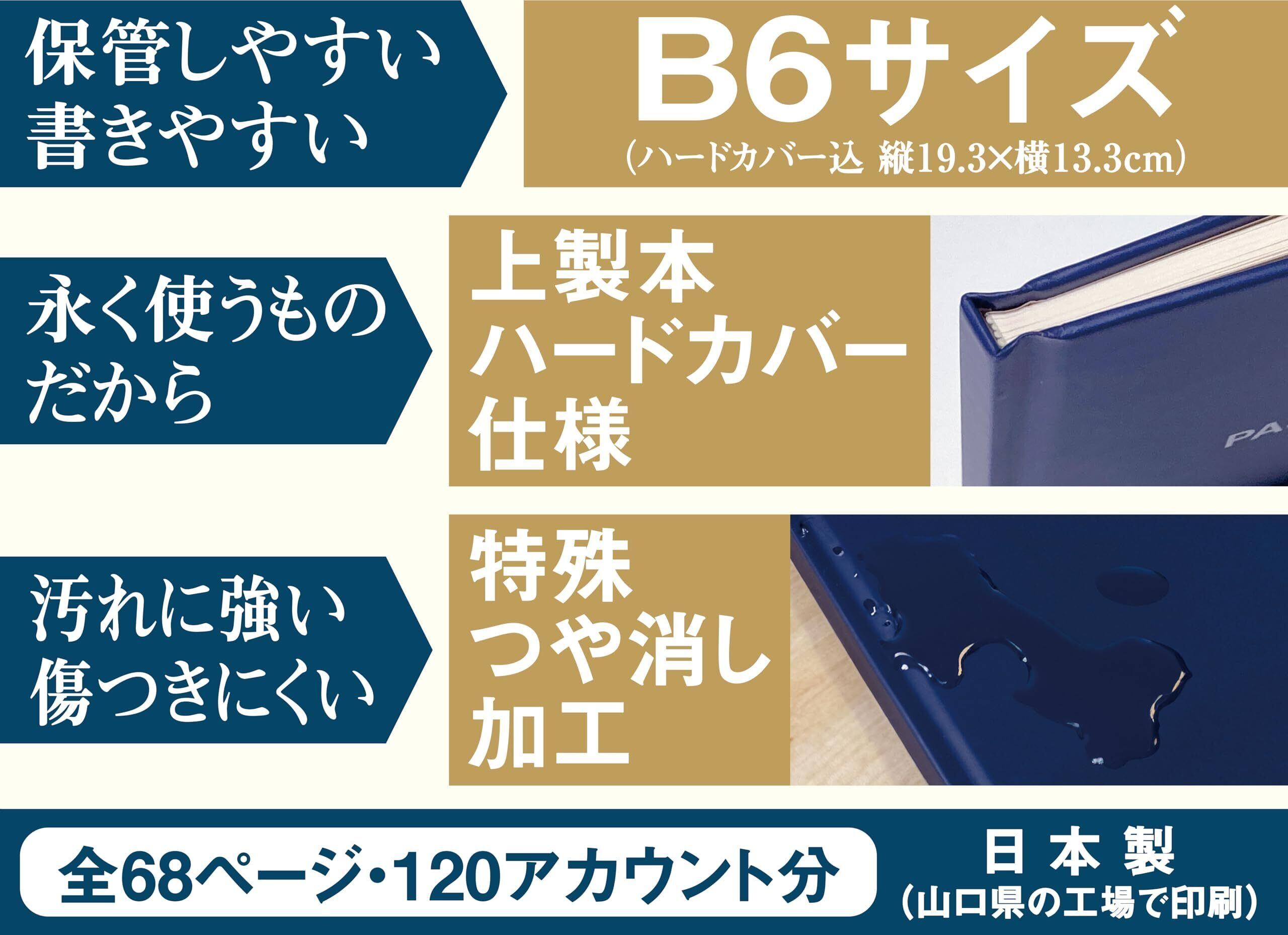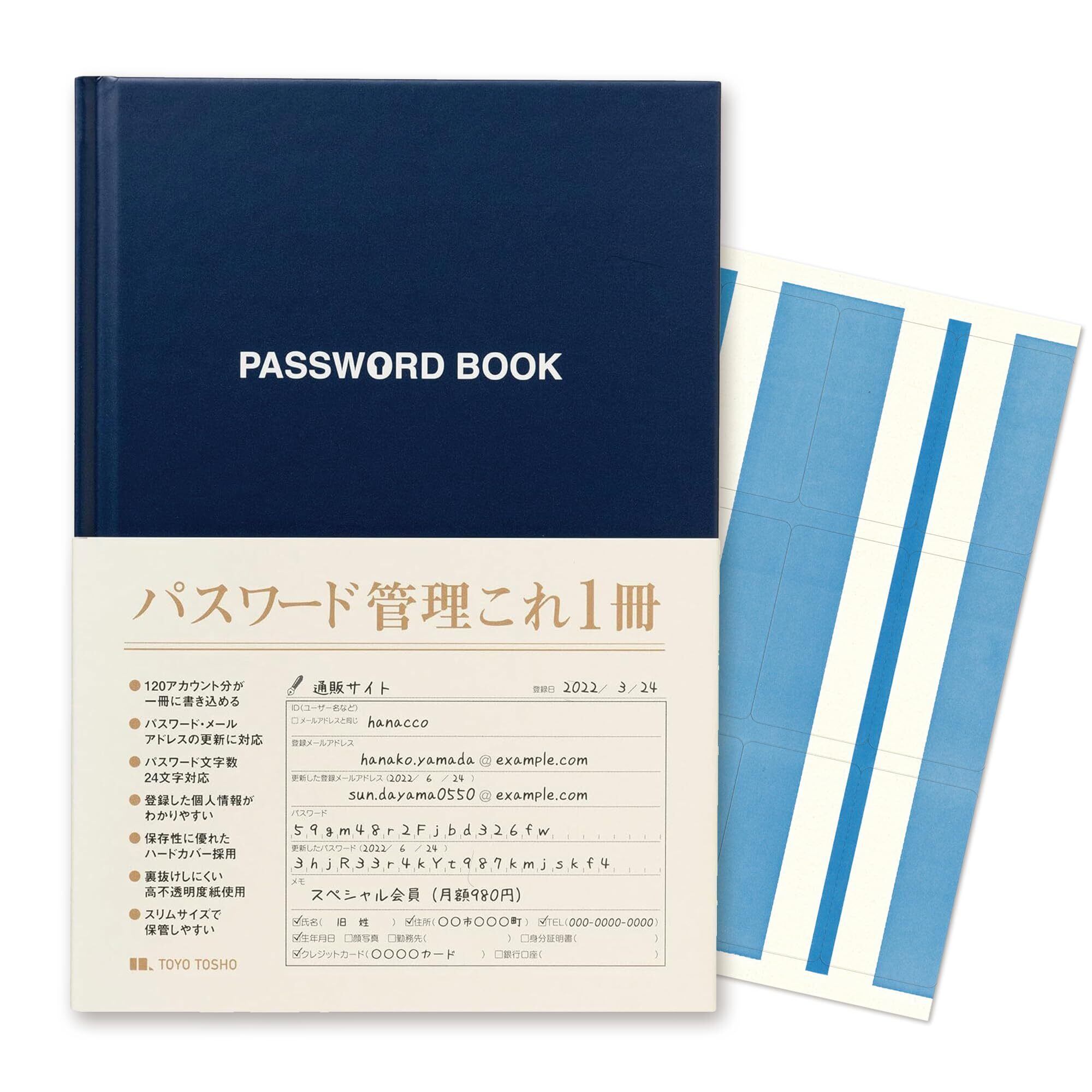 【数量限定】東洋図書出版 パスワード管理帳 ( インデックスシール付き ) B6 120 アカウント 上製本 ハードカバー 日本製