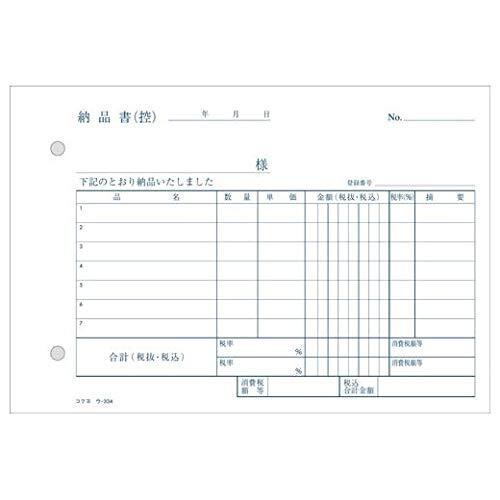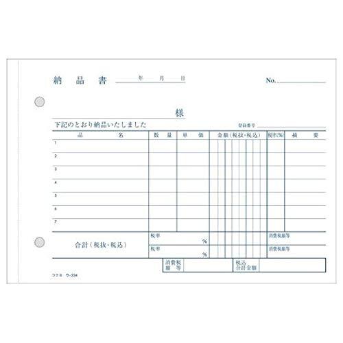 (まとめ買い)コクヨ NC複写簿 4枚納品書 請求書受領書付 B6横 2穴80mmピッチ 7行 50組 ウ-334 軽減税率制度対応 【×5】