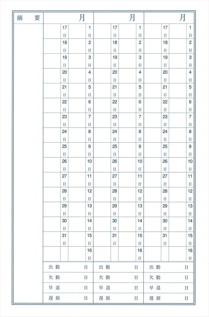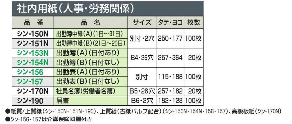 <B>製品概要:</B>出勤簿中紙