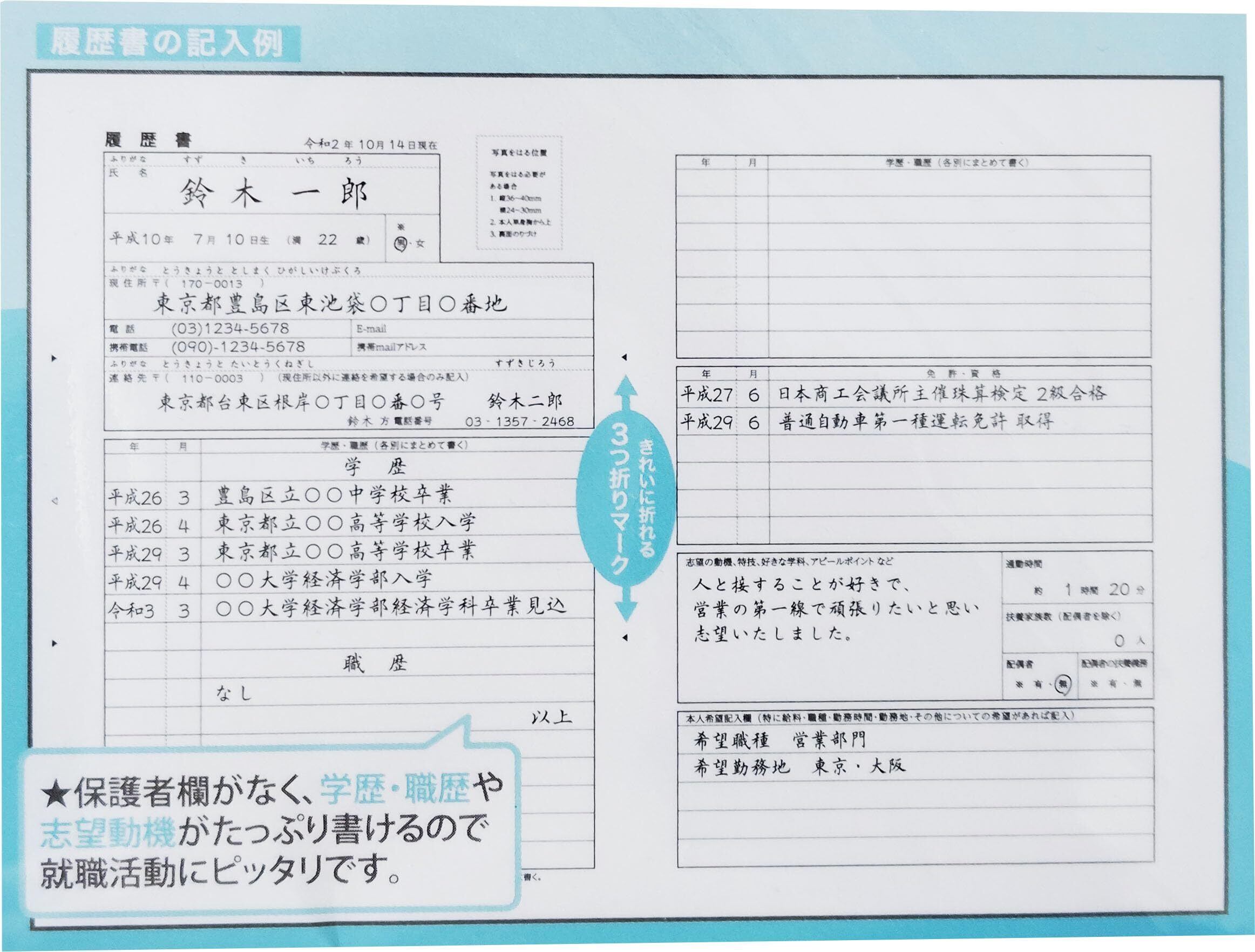 履歴書のサイズ:二つ折りでA4(約210mm×297mm)、見開きでA3