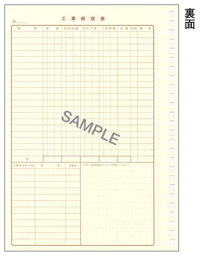お使いいただいている工事台帳が足りなくなった際の補充用としてお使いください 【内容】
