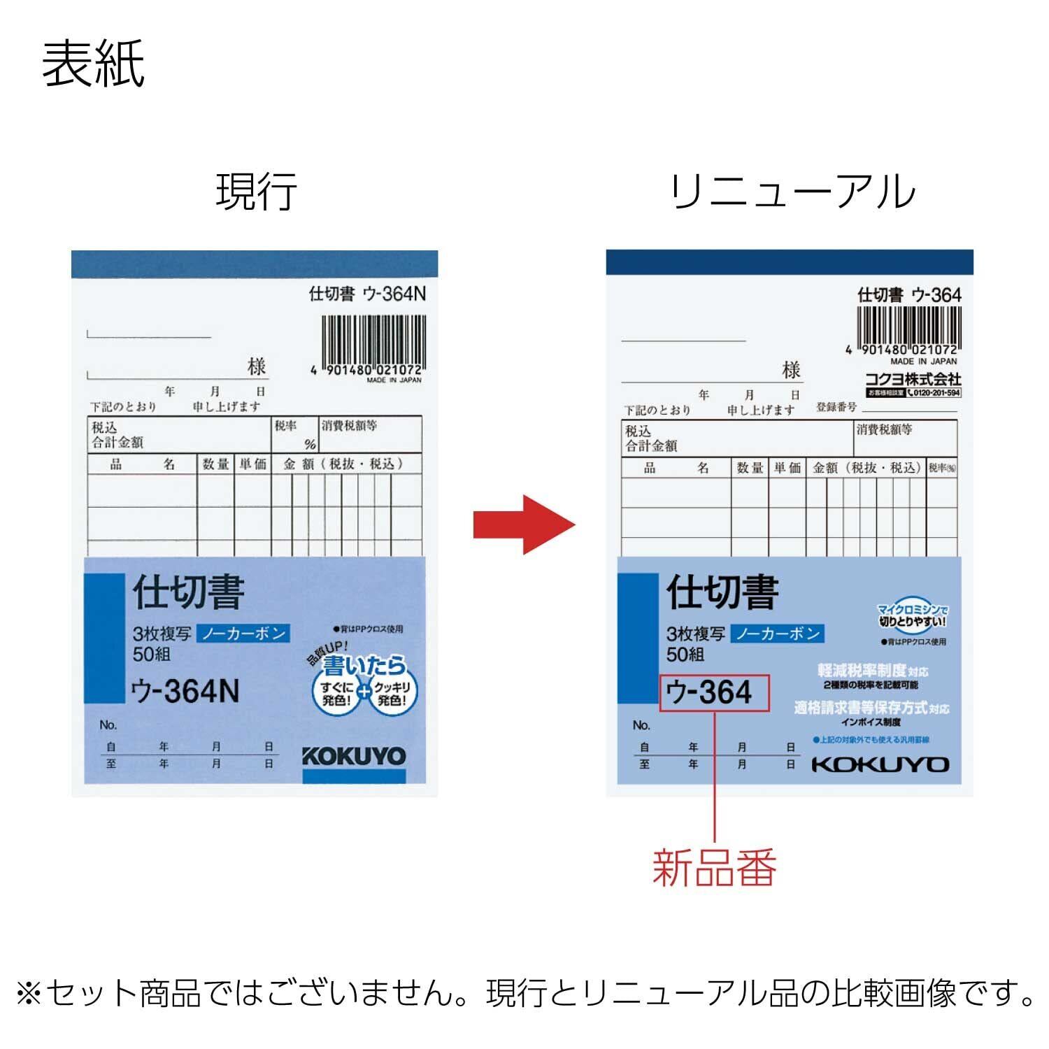 【在庫処分】コクヨ(KOKUYO) 複写簿 ノーカーボン 3枚 仕切書 B7 縦型 8行 50組 ウ-364